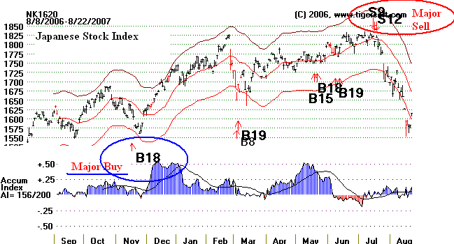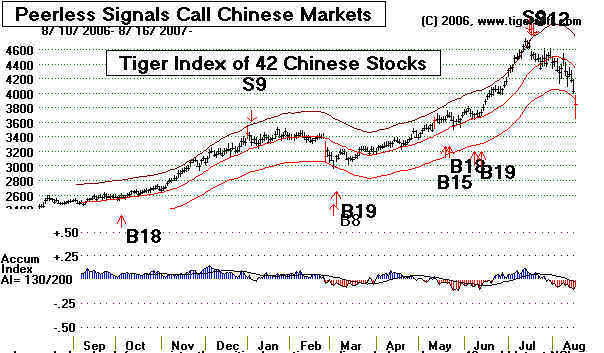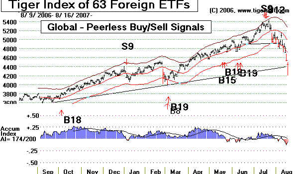 Automatic Peerless Buy and Sell Signals on DJIA and Their Trading Results with Global Markets Foreign ETFs: Our General Studies: 6/5/2009, 5/28/2006, 1/3/2006, 11/15/2005 www.tigersoft.com/ China 2006 2007 Japan 2006 2007 Europe 2006 2007 UK-2006 FR-2006 India 2005 2006 2007 Brazil 2006 2007 2008 (above) Mexico: 1996-2009 Tiger Index of All foreign ETFs 2007 Currencies: Euro versus Dollar: (Studies: 5/26/2006) |