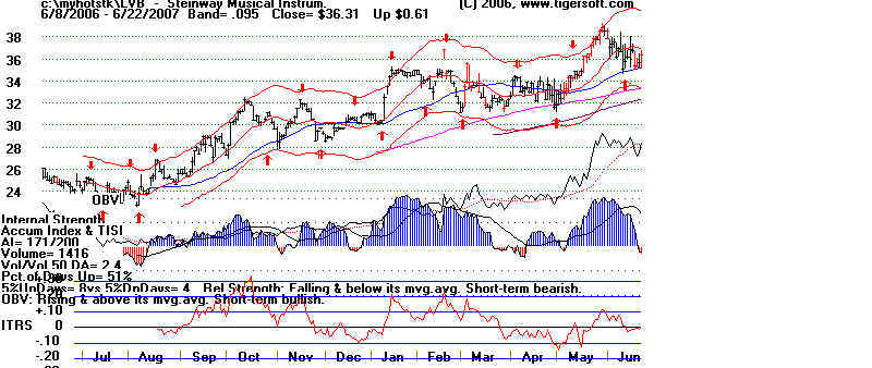 Monday - June 25, 2007 Music, Musical Stocks and Music of the Stock Market. Music endures and is a universal language. I am happy to share my musical tastes here. I grew up listening to Hank WIlliams. It's his songs I sing in Karaoke here in San Diego. Some have called him the Shakespeare of the Hills. I also especially like Johnny Cash, Marty Robbins, Tom Jones and Slim Whitman. There are lots of excellent Karaoke singers here in San Diego. Many have and do sing professionally. (In fact, once, just once, someone asked me if I was a professional singer, after I did my own version of "Don't Worry", a Marty Robbins song I do a la Slim Whitman. I won't soon forget that moment in the sun.) You are welcome to visit My Music Page. Apple (AAPL) and Steinway (LVB) come to mind as stocks you will want to consider purchasing if you are looking to buy a musical stock. APPL trades very well being bought and sold using a simple cross-overs of 5-day moving average. Our software shows that someone using this simple system of buying and selling would have gained 94.4% for the last year. The biggest intra-day loss would only have been 5.1%. There were 17 trades. The nine winning trades averaged gains of 9.6% each. The losing trades lost only an average of 1.7% apiece. Monday's are the best day of the week for the stock, being up 62.5% of the time. Friday's are the weakest being up only 37.0% of the time. The stock opens much more regularly higher (63% of the time for the last year than it closes above the opening (48% of the time. AAPL has nearly doubled from a year ago. And it is up 54% of the time, day-to-day. All these things Tiger Software reveals about any stock. Steinway LVB) shows a lot of blue Tiger Accumulation, which makes it attractive. Its aggression buying line (OBV) is, at least, as strong as the price movement. This is bullish. And using Tiger's automatic buys and sells at the next days' openings, without any short sales, would have gained a trader 67.4%. $10,000 invested this way a year ago would have become $16,740, allowing $40 per trade for commissions. public loves APPL and buys it at the opening. All nine trades would have been profitable. The biggest paper loss would have been 10.6%. ![]() , As you can see, the Tiger programs would have helped you make a lot of money here quite easily. These tools are available with any stock or index. Get them today. Why wait? We have thousands of happy customers. Now something off the beat, as it were. Here is a site that creates music from the stock market' s own fluctuations. They use the movements of prices to provide a melody. collision detection: Music based on stock-market activity Where is the Music Industry headed? Music: The New Stock Market . . . A stock market for music. McBride's model says that "even a band selling 100000 units a year becomes profitable." Is this what the future looks like? . http://www.cultureby.com/trilogy/2007/01/a_stock_market_.html And where do we go to sing. Check out: www.wookaraoke.com Saturday evening - Sheraton's Shooters Lounge - La Jolla. and Patrick Hiill's Show on Wednesday evening at Ramada Inn in Kearney Mesa. |