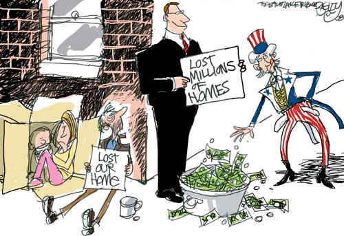 TigerSoft believes in democracy, not in the present plutocracy. We can help you make money in this environment. Wealthy insiders run the stock market and Washington, too. Make money in the market, but work for real change, too. Help us end the "trickle-up" from working people to Wall Street. Please click this link for a Teach-In about the financial crisis that unregulated banks have caused. Obama's solution is Bush's. Bail the banks out with taxpayer money. It won't work. The banks are not using the money to start making loans again. And it rewards insider-trading criminals and protects banks that are too big to fail, rather than breaking them up and enforcing laws that should apply to everyone. |