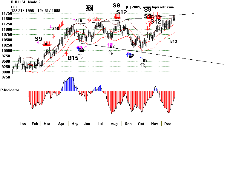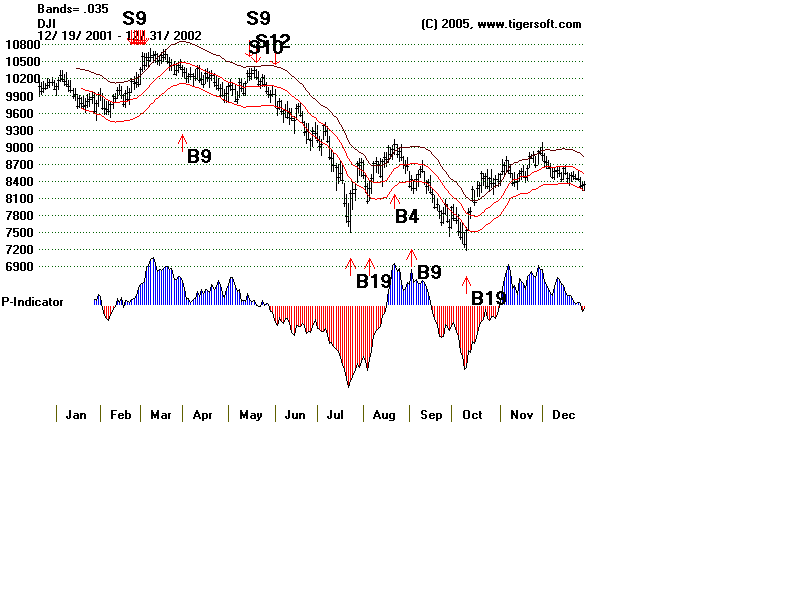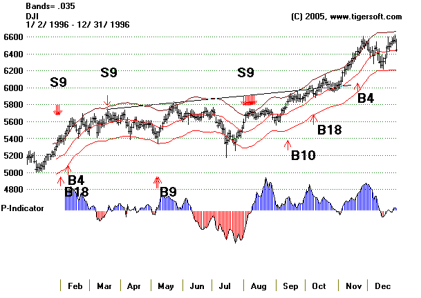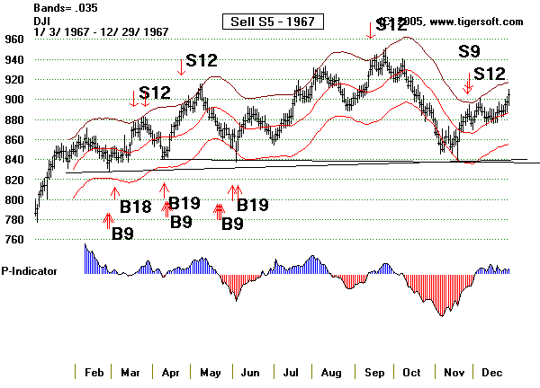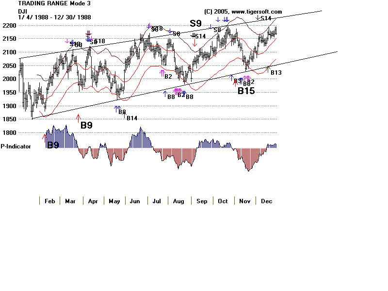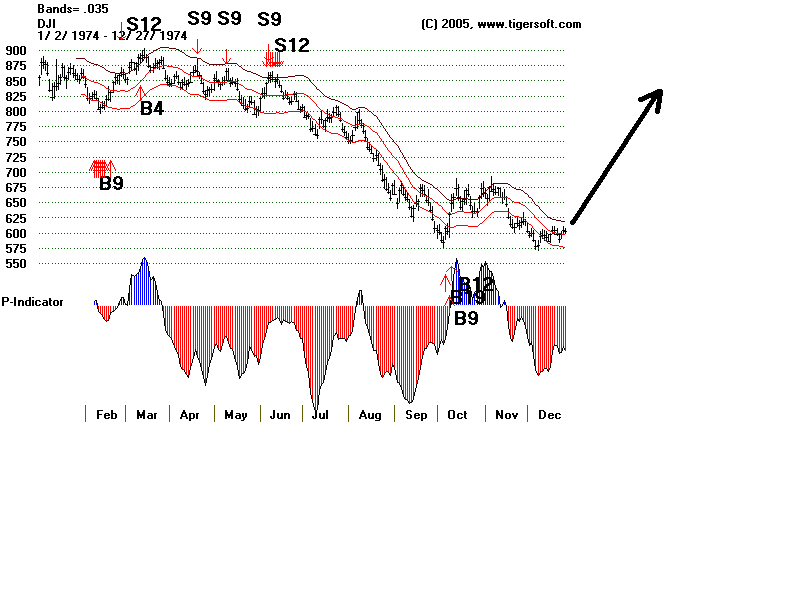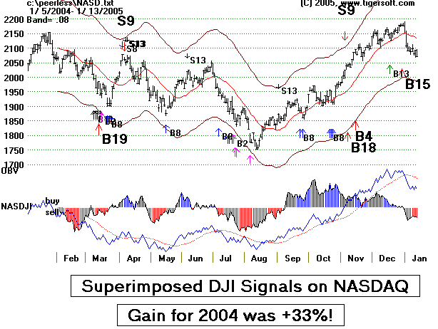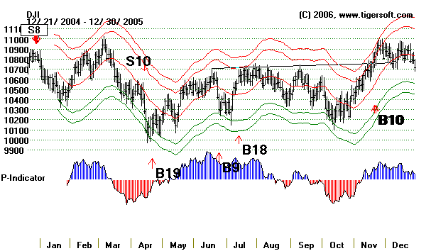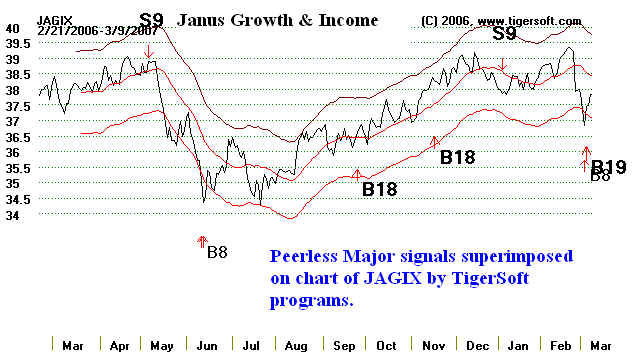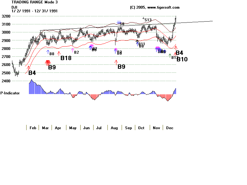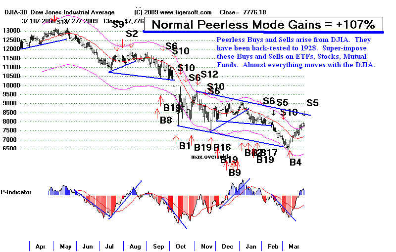 TigerSoft's Peerless Software produces red arrowed Buy and Sell signals.