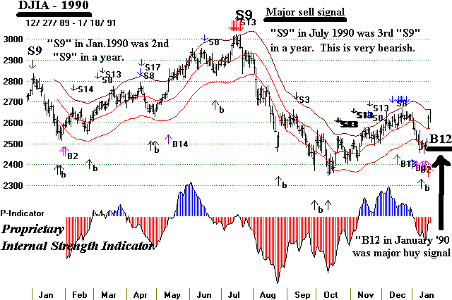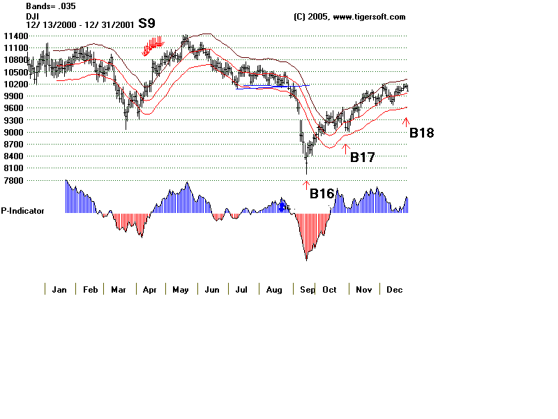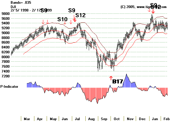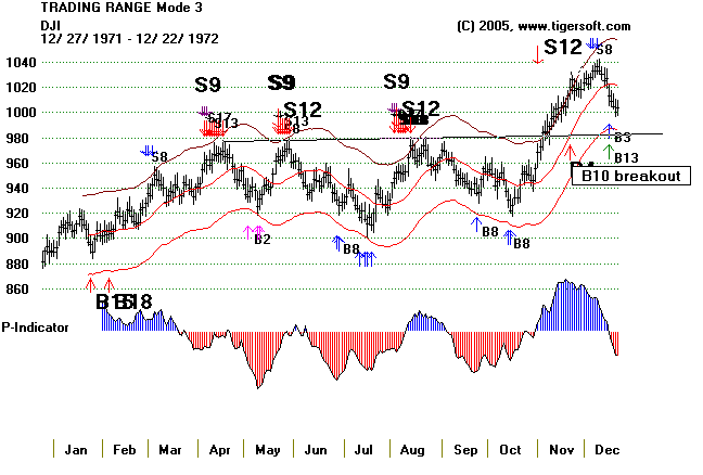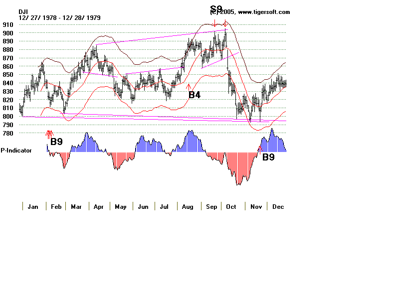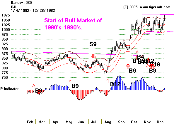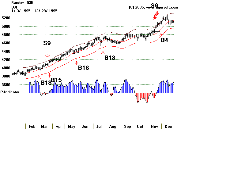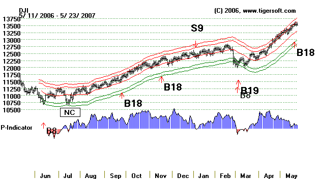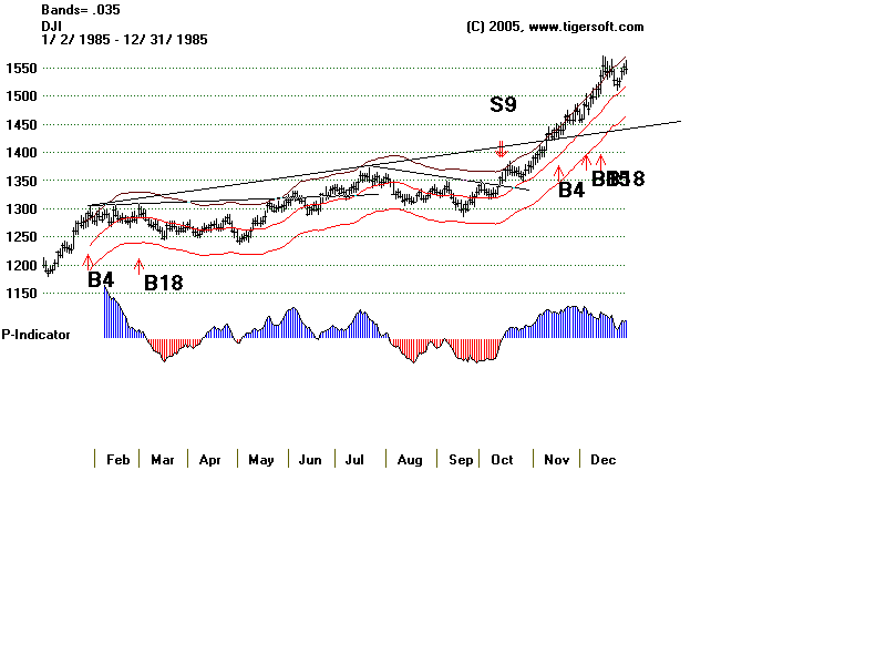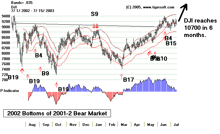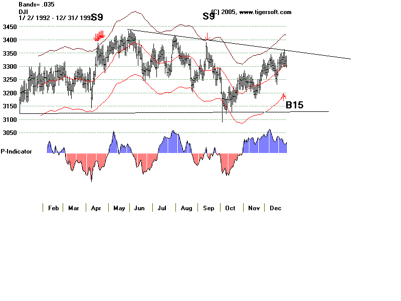 TigerSoft's Peerless Software produces red arrowed Buy and Sell signals.