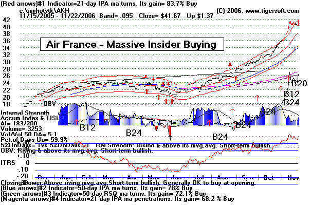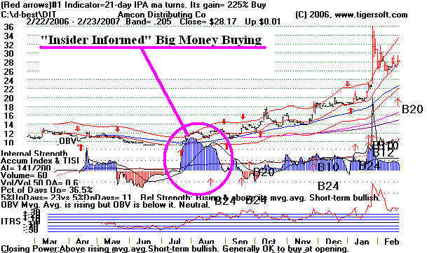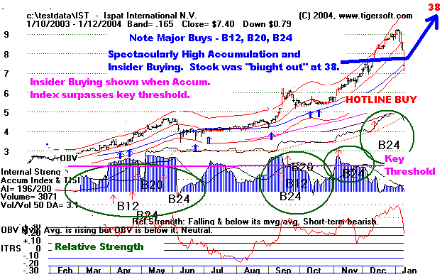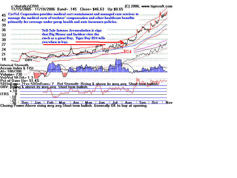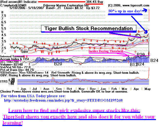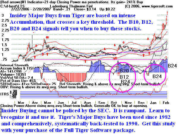 FULL TIGERSOFT PACKAGE (Only $995 - A savings of more than $350 off items individually priced.) > All TigerSoft and Peerless programs. ........TigerSoft Automatic Buy and Sell Signals ........NASDAQ Market Timing: nearly 30% gain per Year since 1986. ........Peerless DJI Market Timing System: 20% gain per year since 1965 on DJIA. ........Tiger Power-Ranker....Quickly find most Accumulated Stocks. ........ Flag more than 400 Different Specific Tell-Tale Conditions from 7000 stocks. ........ Flag Power Buy-B12's, B24's and Optimized Buys! and Sells! ........Numerous Powerful, Profit-Mazimizing Original Indicators. > All Tiger's books and > 12-months Access to www.tigsoft.com's ........Elite Stock Professional Services: ........Thrice Weekly On-Line Hotlines, ........Bullish & Bearish Daily Special Situations, ........Stock and Index Data and Program Updates. >>> ORDER FULL TIGERSOFT PACKAGE ($995) <<<