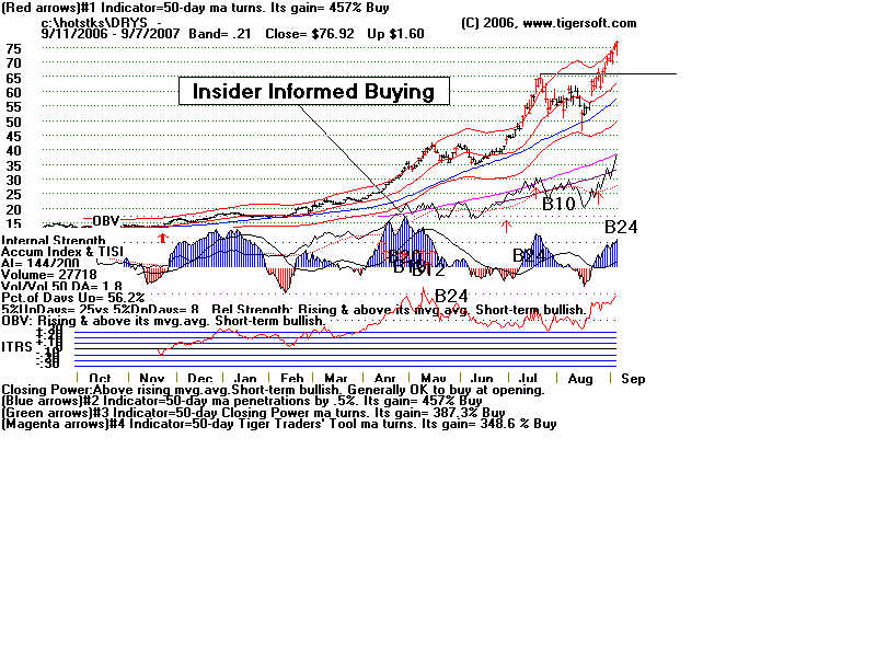 DRYS 144 IP21=.28 76.92 +1.60 Repeated insider buying (IP21>.50)