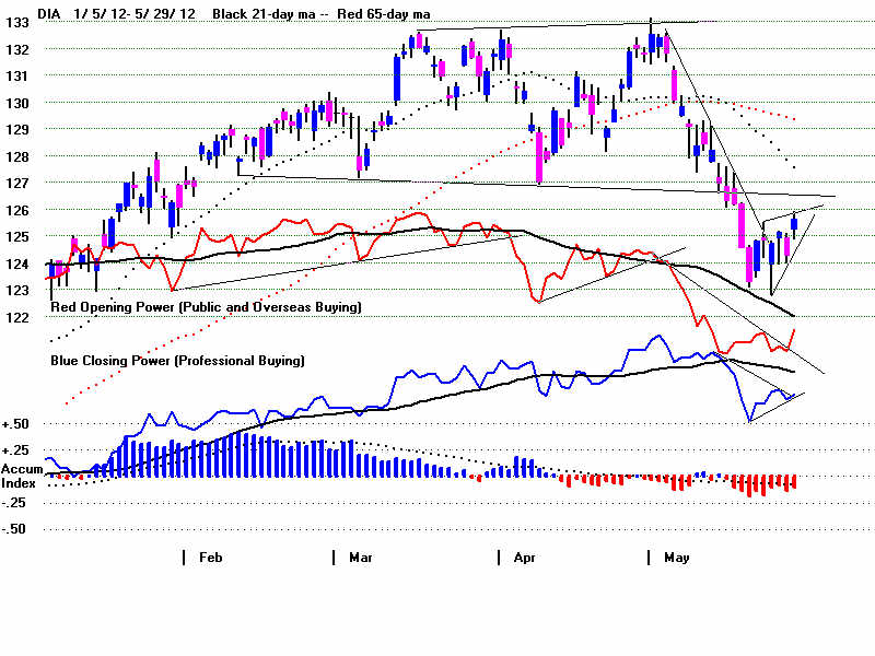 The DJI is at the support of its rectangle pattern. The Closing Powers for