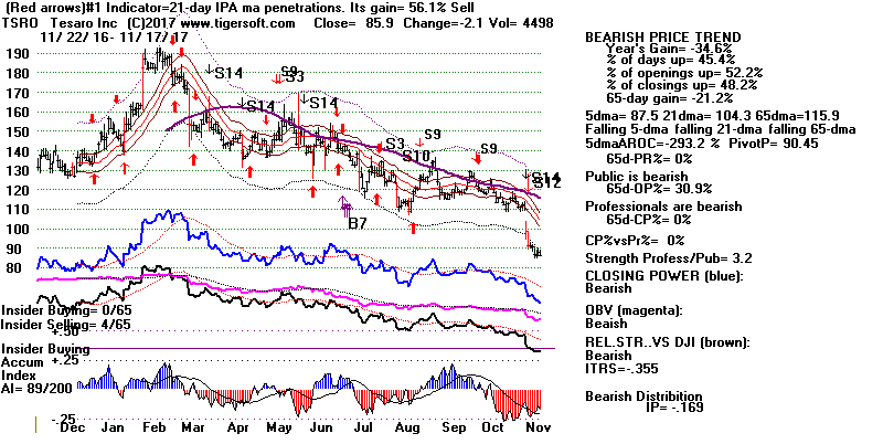 BEARISH MINCPS 11/17/2017 When the Closing Power downtrend is broken, our rules call for the stocks to be covered. This applies now to BKD, DF, BBBY.