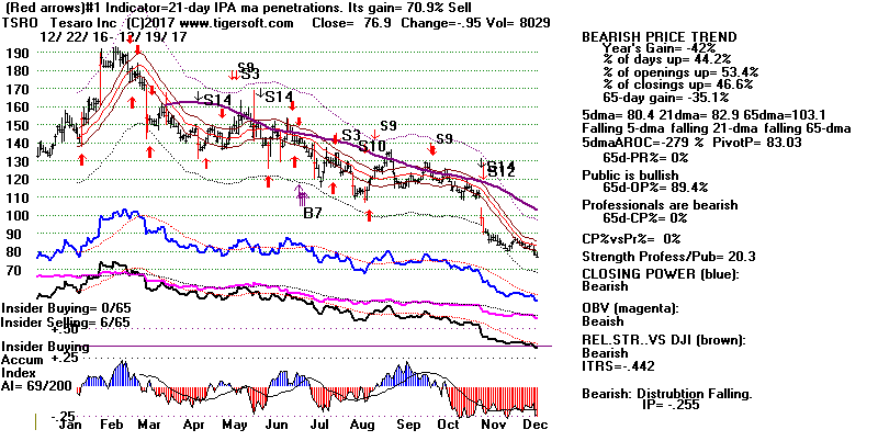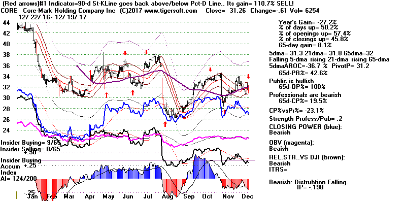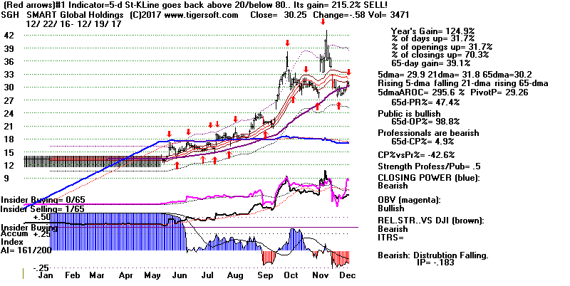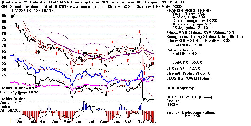 RED STOCHASTIC SELLS Here we want to see falling or flat 65-dma and negative Accumulation. 12-19-2017
