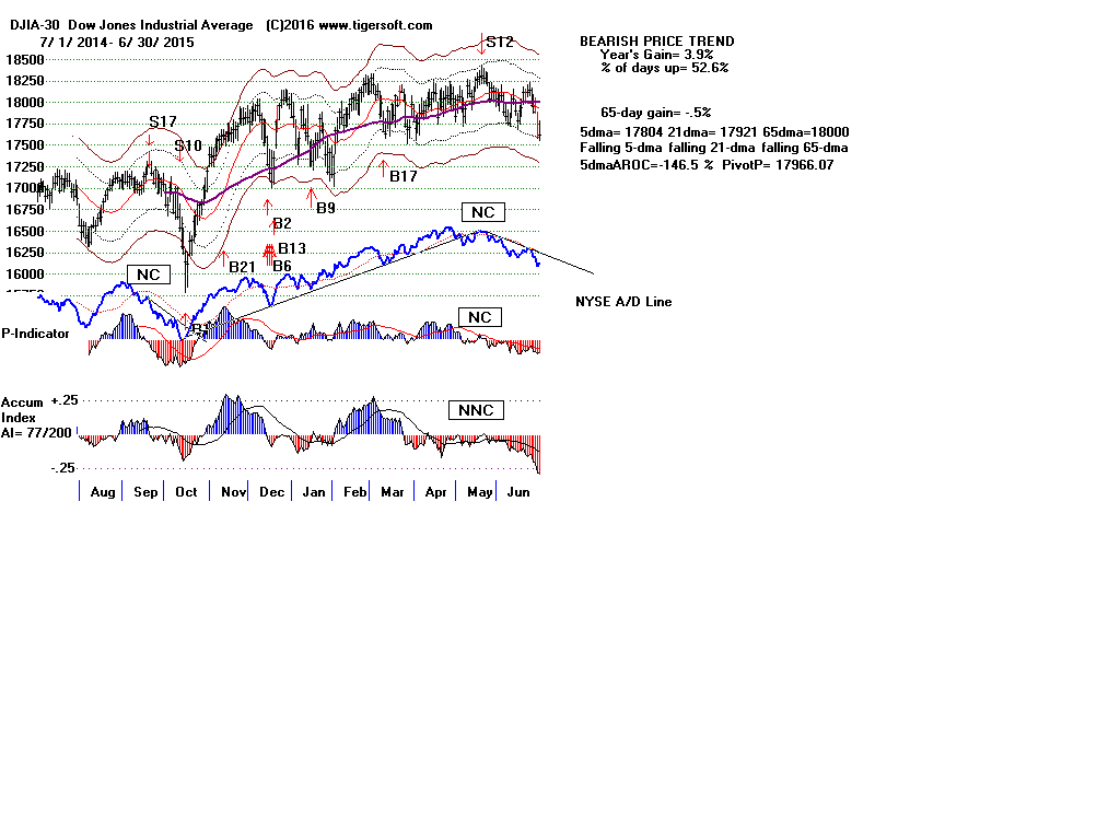 ETFs and the Accumulation Index for the DJI remains quite negative, as
