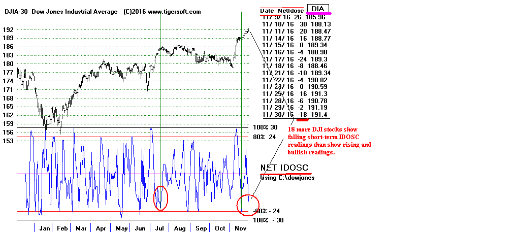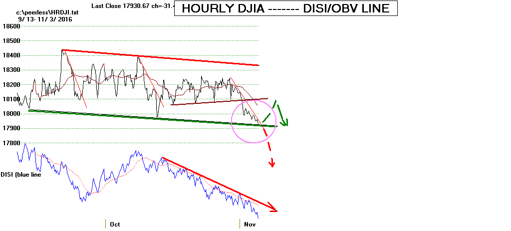 does the Tiger ObvPct Indicator. The Hourly DJI's DISI/OBV is still