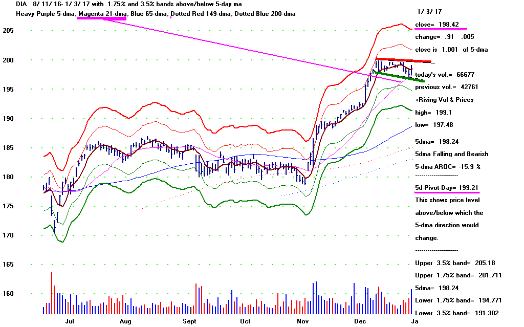 Eventually, the DJI will break away from its narrow trading range. Looking