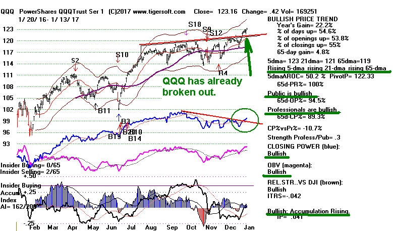 The QQQ and the NASDAQ are still in bullish uptrends. Their up-slope is a