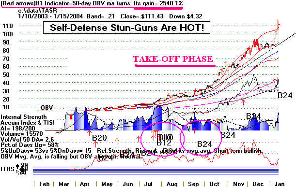 | 1: Take-Off - Note Bullish Blue Accumulation from Insiders & Big Money. (2003) Note major TigerSoft Buys B10, B12, B20 and B24 ![]() |