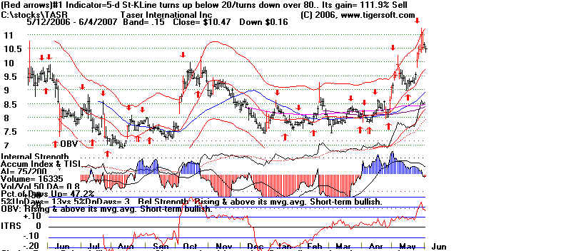 Big-Money Selling and Distribution Dominates. (2005)![]() ============================================================================ 4. Base-Building lets Professionals Scalp It, Trading It Very Short-Term. (2007) Use TigerSoft Buys and Sells and Closing Power trend-breaks. Alternating Accumulation and Distribution From 2006 to 2007, the stock was controlled by professionals who scalped a living out of it by short-term trading. TIgerSoft quickly alerted users to how to trade the stock. Note how Accumulation started to rise, as new rally developed. ![]() |