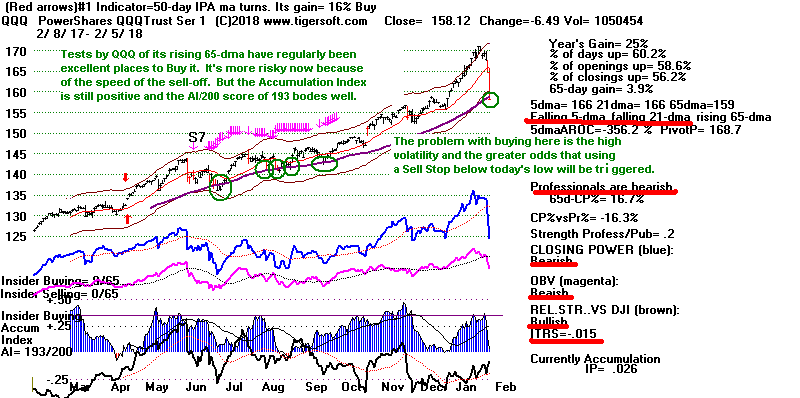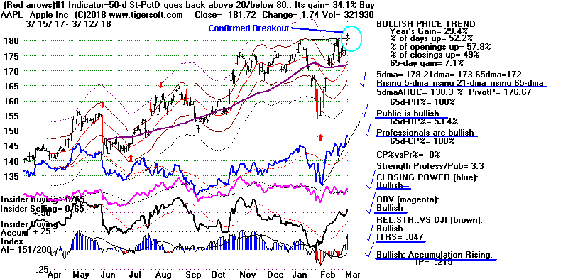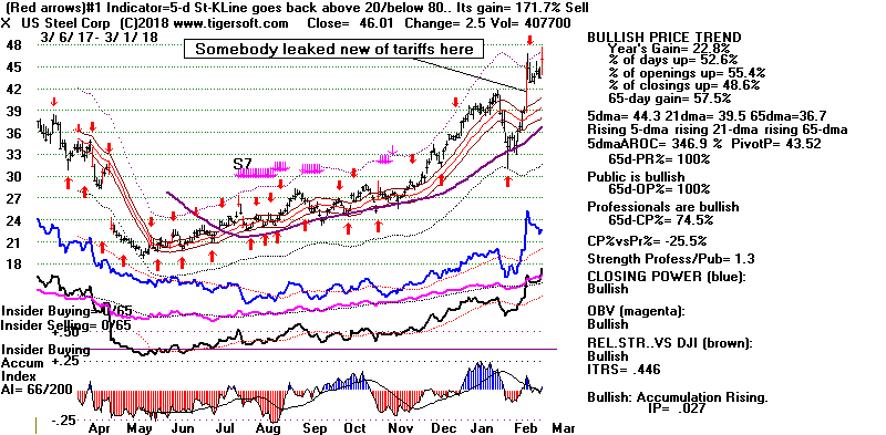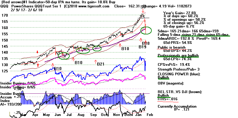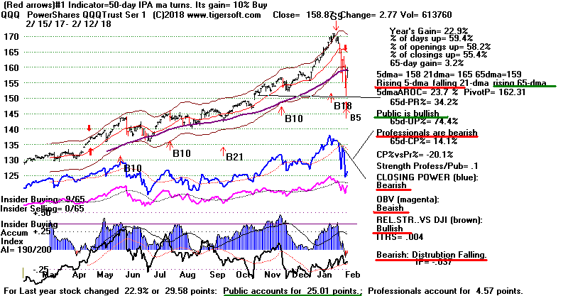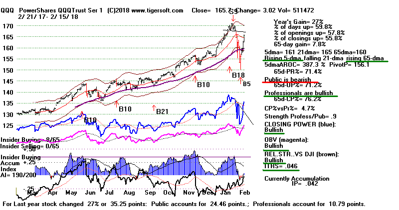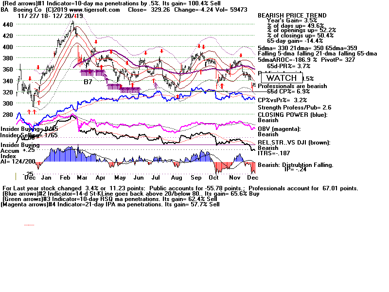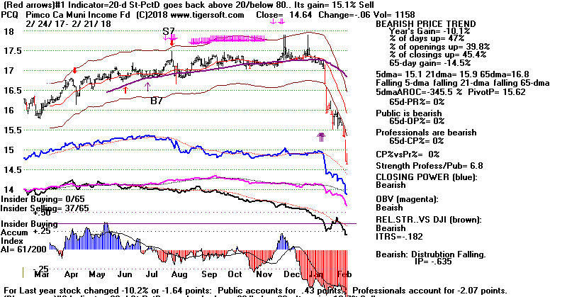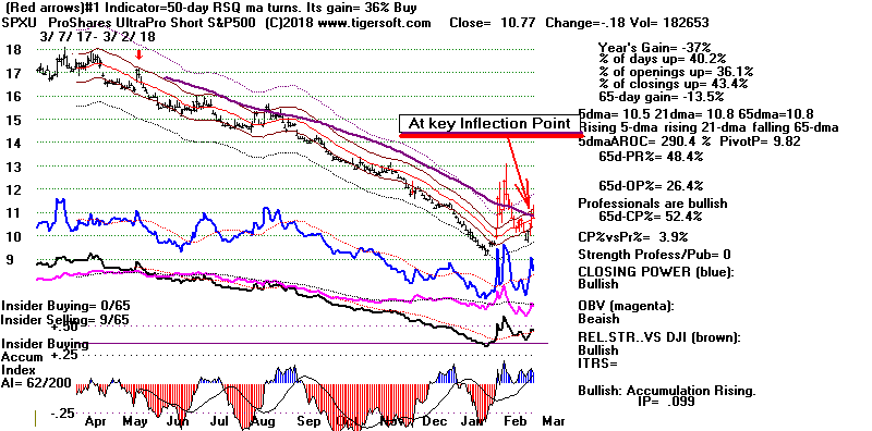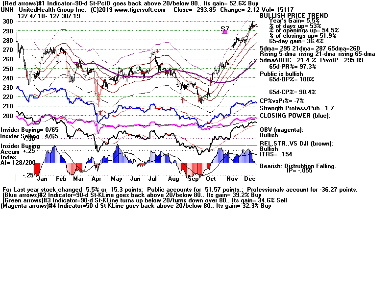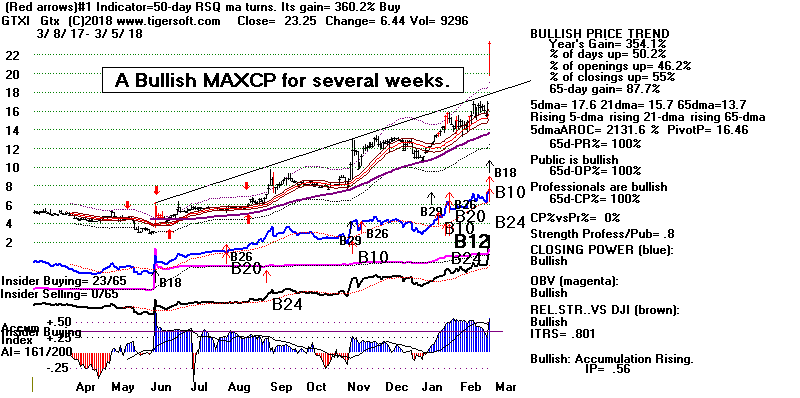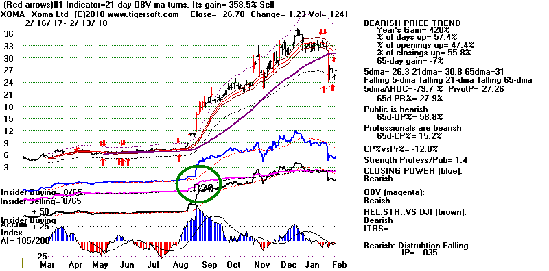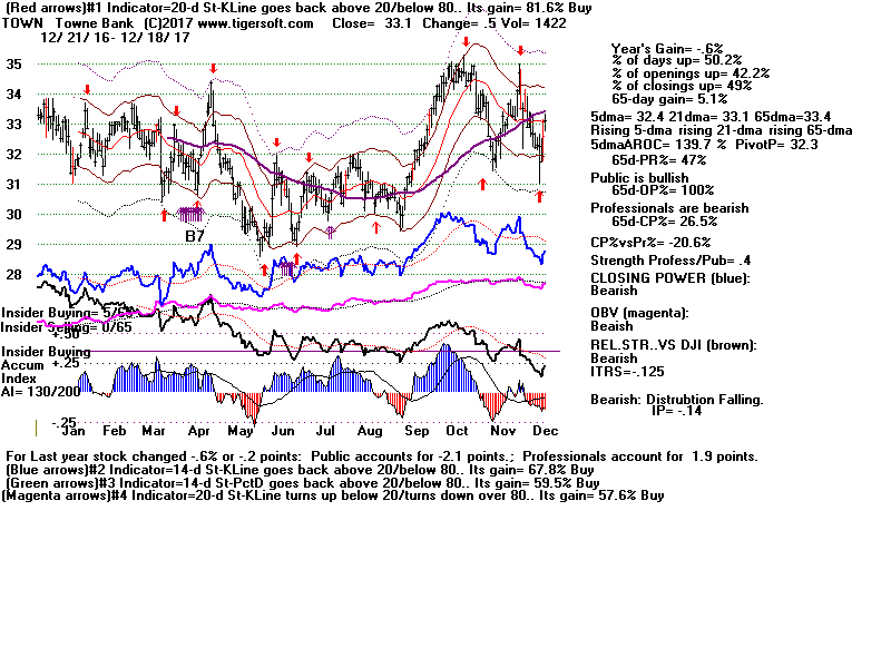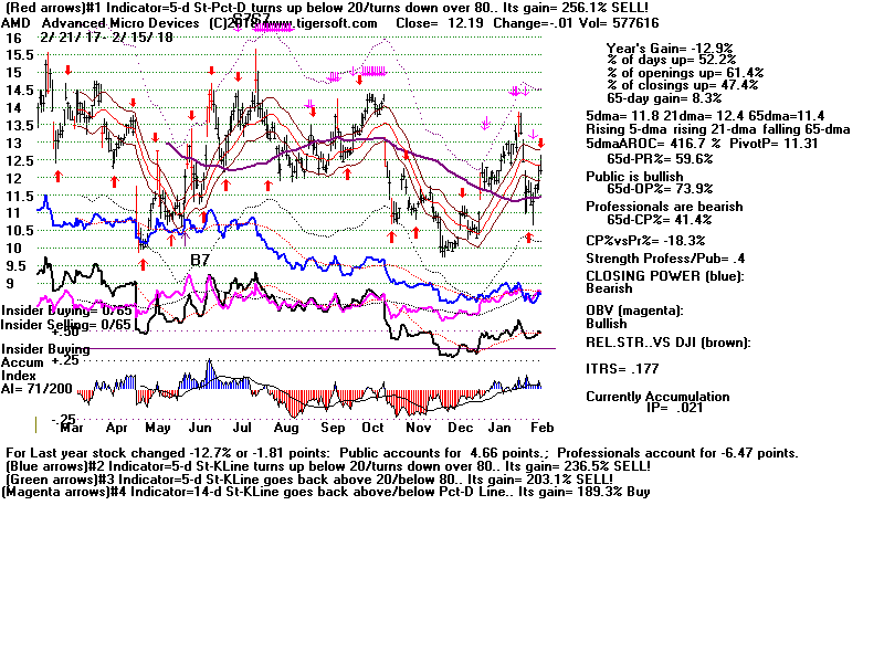 BIGVODN 31 There is big rush for the exits here!Table 3 Count of Stocks and New Highs in Key Tiger Directories Date = 180129 ------------------------------------------------------------------- BIGMIL 6 3 50 % JETS 9 3 33 % BIGBANKS 7 2 29 % MILITARY 38 9 24 % GAMING 28 6 21 % NASD-100 100 16 16 % TRANSP 20 3 15 % RETAIL 53 8 15 % ====================================================== EDU 7 1 14 % DOWJONES 30 4 13 % NIFTY 30 4 13 % HOSPITAL 8 1 13 % SP-100 96 11 11 % BIOTECH 386 44 11 % INFRA 35 4 11 % SP500 485 52 11 % INDEXES 194 19 10 % FINANCE 93 8 9 % MORNSTAR 238 22 9 % DJI-13 13 1 8 % RUS-1000 837 68 8 % COMODITY 70 5 7 % HOMEBLDG 17 1 6 % SOFTWARE 66 4 6 % INSURANC 32 2 6 % BEVERAGE 20 1 5 % COMPUTER 23 1 4 % REGBANKS 33 1 3 % AUTO 39 1 3 % OILGAS 141 4 3 % CHINA 64 2 3 % CHEM 64 1 2 % ELECTRON 178 3 2 % SEMI 130 2 2 % INDMATER 90 1 1 % ==================================================== None: GREEN ETFS HACKERS SOLAR COAL GOLD REIT UTILITY PIPELINE FOOD BONDFUNDTable 4