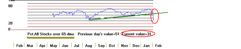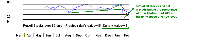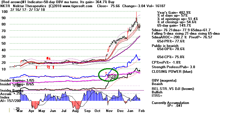 2/12/2016 ---> OBV NNCs on DJI's Rally to 2.7% Upper Band when DJI's 65-dma is falling.
