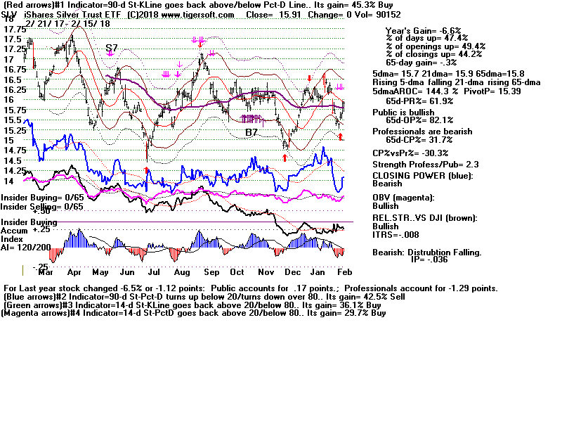 1/29/2018 Bullish MAXCPs Bearish MINCPs Table 1QUICKSILVER on ETFS - 01/29/18ETF CLOSE CHANGE PIVOT-PT 5-dma AROC CL-PWR CANDLE IP21 ITRS --------------------------------------------------------------------------------------------- DIA 264.16 -1.75 261.87 41.4% Bullish RED .319 ---- --------------------------------------------------------------------------------------------- COMPQX 7466.51 -39.26 7460.29 39.3% Bullish RED .378 -.019 --------------------------------------------------------------------------------------------- SPY 284.68 -1.9 283.29 35.1% Bullish RED .376 -.023 --------------------------------------------------------------------------------------------- QQQ 170.1 -.83 169.51 58.6% Bullish RED .299 -.018 --------------------------------------------------------------------------------------------- MDY 359.43 -3.08 W362.1 -27.9% Bullish RED .177 -.046 --------------------------------------------------------------------------------------------- IWM 158.7 -.9 W159.96 -23.5% Bullish RED .165 -.042 --------------------------------------------------------------------------------------------- FAS 80.11 -1.6 79.48 82.4% Bullish RED .258 .216 --------------------------------------------------------------------------------------------- RETL 44.85 -.17 W45.26 -42.5% Bullish BLUE .413 .677 --------------------------------------------------------------------------------------------- SOXL 180.55 -.58 W187.42 -76% Bullish BLUE .241 .015 --------------------------------------------------------------------------------------------- TECL 137.52 -3.63 W139.23 18.2% Bullish RED .23 .129 --------------------------------------------------------------------------------------------- IBB 118.5 .46 116.81 127.8% Bullish BLUE .233 .038 --------------------------------------------------------------------------------------------- GLD 127.35 -.72 127.28 27.4% Bullish RED .137 -.08 --------------------------------------------------------------------------------------------- OIL 7.34 -.1 7.22 178.3% Bullish ---- .203 .117 --------------------------------------------------------------------------------------------- OIH 28.09 -.63 W29.32 -220.7% ---- RED .261 .027 --------------------------------------------------------------------------------------------- GASL 28.11 -1.63 W31.28 -399.1% Bearish RED .047 .155 --------------------------------------------------------------------------------------------- UGA 33.9 -.24 33.9 67.9% Bullish RED .228 -.054 --------------------------------------------------------------------------------------------- UUP 23.32 .06 W23.51 -53.5% Bearish ---- .055 -.171 --------------------------------------------------------------------------------------------- IEF 103.51 -.26 W104.05 -11.5% Bearish ---- -.056 -.15 --------------------------------------------------------------------------------------------- XLU 50.39 -.65 W50.54 32.6% Bearish RED -.178 -.241 --------------------------------------------------------------------------------------------- WEAT 6.28 .1 5.94 239.6% ---- ---- .181 -.123 --------------------------------------------------------------------------------------------- YINN 50.48 -3.32 W51.26 156.2% Bullish RED .323 .374 --------------------------------------------------------------------------------------------- RSX 23.33 -.28 W23.58 -44.4% Bullish RED .322 -.057 --------------------------------------------------------------------------------------------- AAPL 167.96 -3.55 W177.04 -259.5% Bearish RED -.076 -.147 --------------------------------------------------------------------------------------------- GOOG 1175.58 -.26 1169.97 84.7% Bullish RED .35 .018 --------------------------------------------------------------------------------------------- MSFT 93.92 -.14 91.9 125.1% Bullish RED .041 -.01 --------------------------------------------------------------------------------------------- AMZN 1417.68 15.63 1362.54 330.9% Bullish BLUE .311 .119 --------------------------------------------------------------------------------------------- FB 185.98 -4.02 W189.35 16.2% Bullish RED .07 -.083 --------------------------------------------------------------------------------------------- NVDA 246.85 3.52 238.91 276.9% Bullish BLUE .242 .025 --------------------------------------------------------------------------------------------- BA 340.82 -2.4 335.59 41.6% Bullish RED .12 .174 --------------------------------------------------------------------------------------------- GS 272.48 4.34 260.09 206.9% Bullish BLUE .17 .021 --------------------------------------------------------------------------------------------- HD 204.92 -2.31 204.9 11.2% Bullish RED .069 .092 --------------------------------------------------------------------------------------------- CAT 162.58 -4.48 W169.43 -245.8% Bearish RED .115 .055