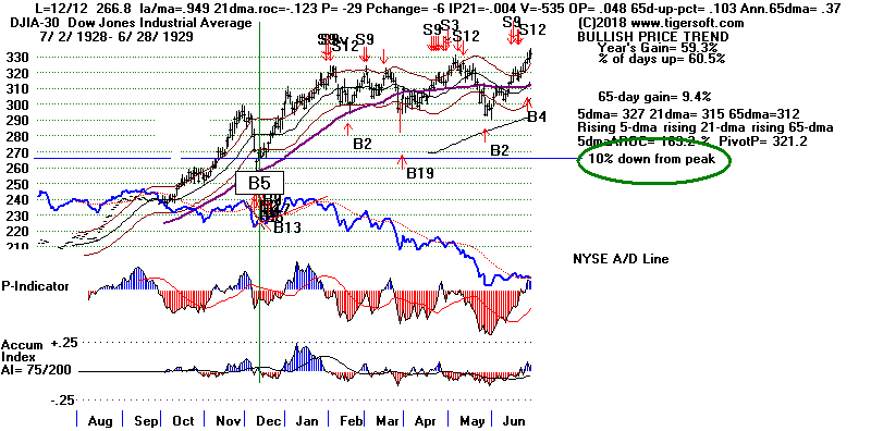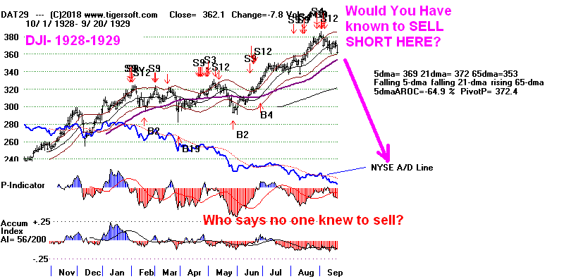 Study- 9/3/2017 TigerSoft (not Peerless) charts of Major Tops as they occurred.