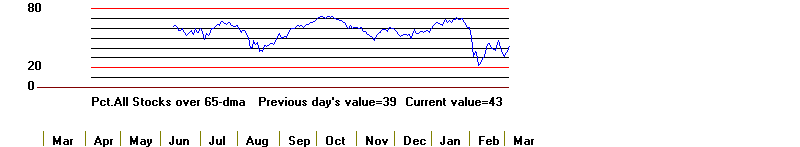 There have been 38 cases of such poor breadth since 1945 with the DJI above the 21-dma.