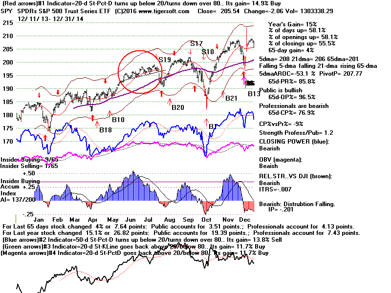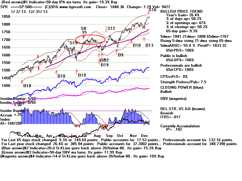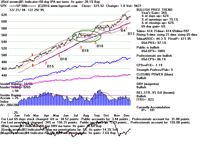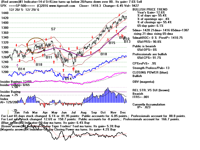 Cases where SP-500 went sidewise in an extremely narrow and flat trading range. Included are some cases where these patterns looked more like typical head/shoulders patterns. I've circled in red the H/S patterns.