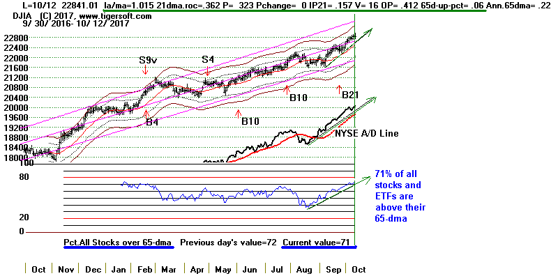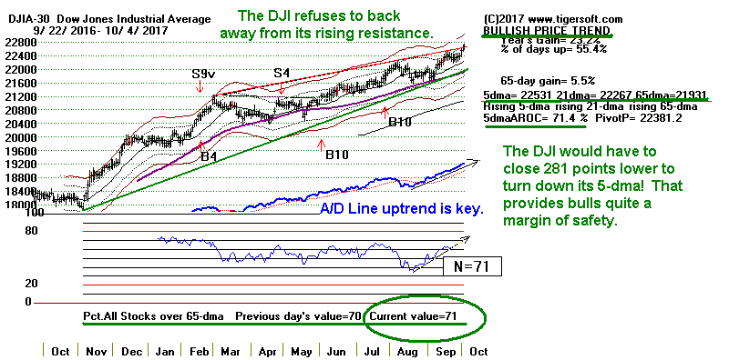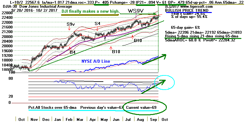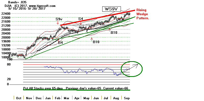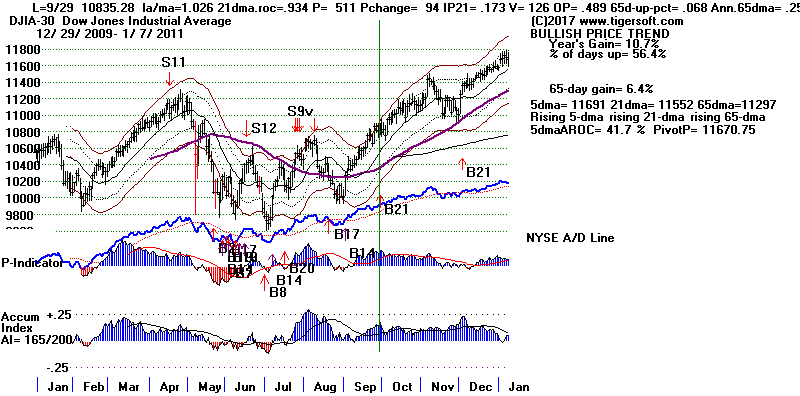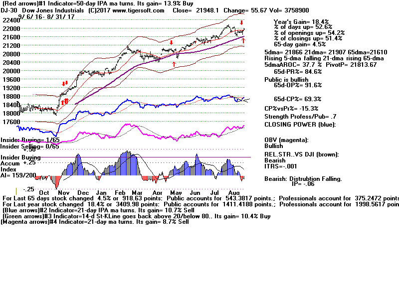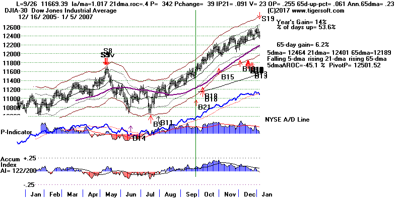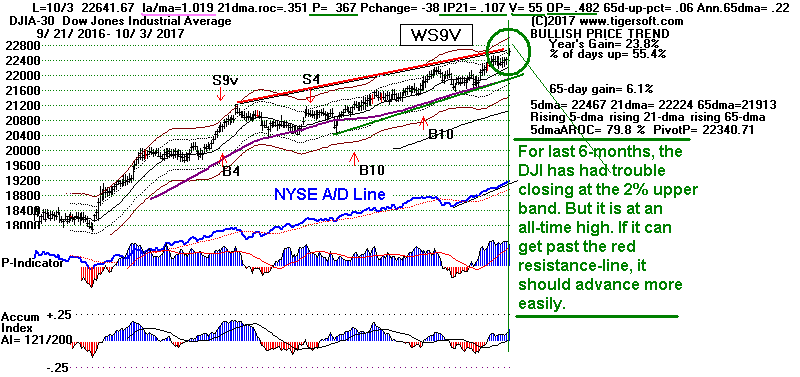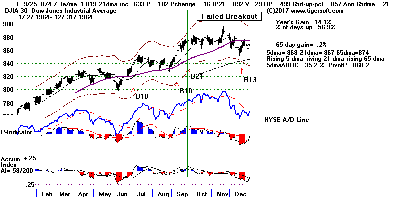 on DJI's Rally to 2.7% Upper Band when DJI's 65-dma is falling.