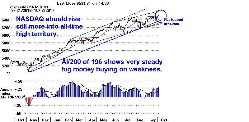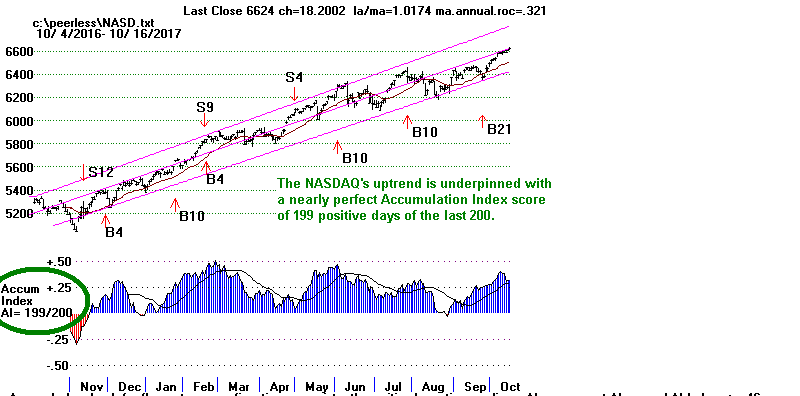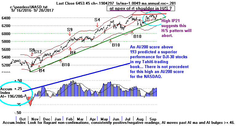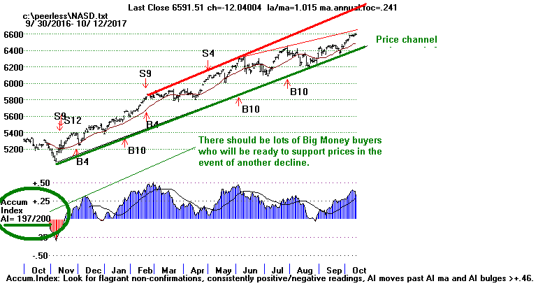 the NASDAQ's high AI/200 score shows there is very little likelihood of any