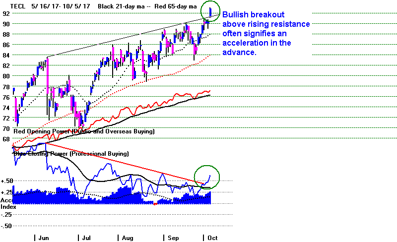 TECL 87.87 .49 87.26 48.2% Bearish BLUE .165 .031