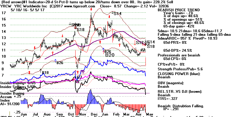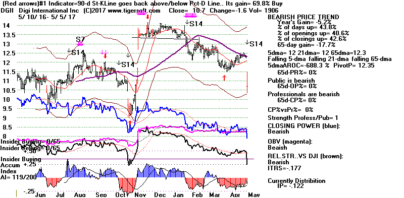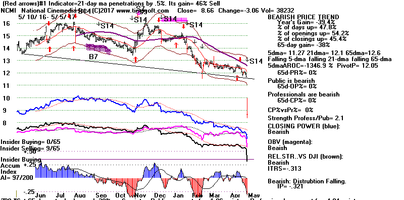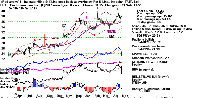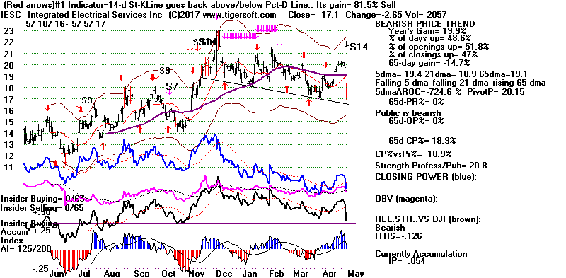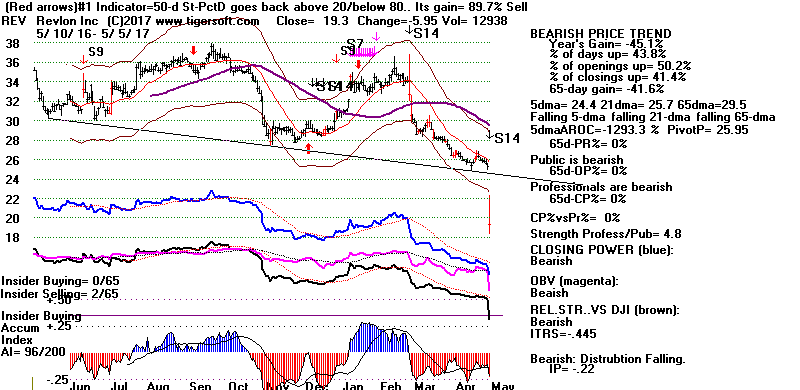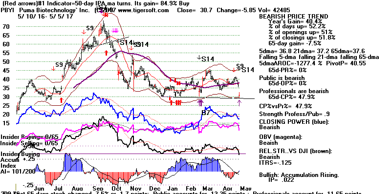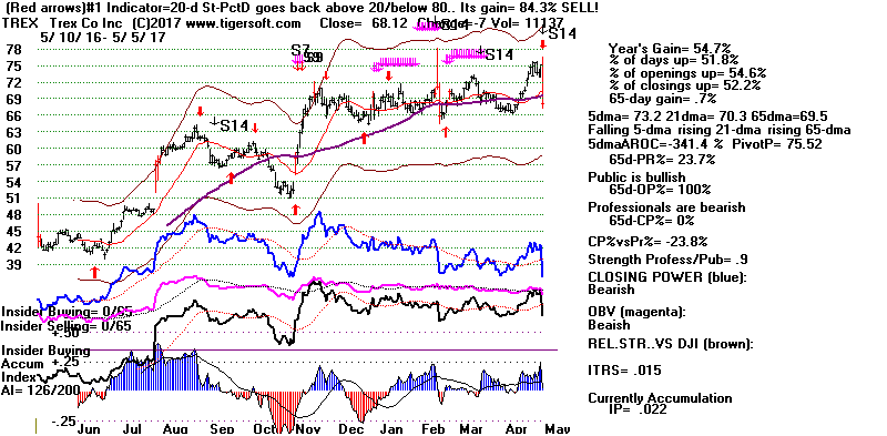 TRAP-DOOR STOCKS 5/5/2017 Hint: Besides H/S patterns and breaks in 65-dma, watch the recent Accum. Index nadirs. If they are not rising, the stock may be getting very vulnerable.