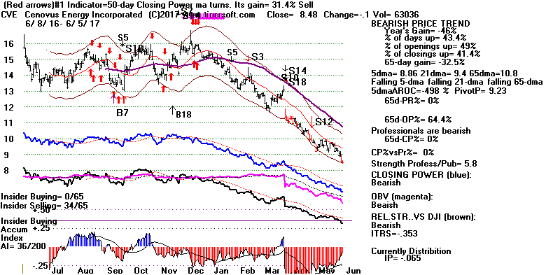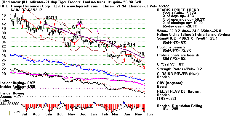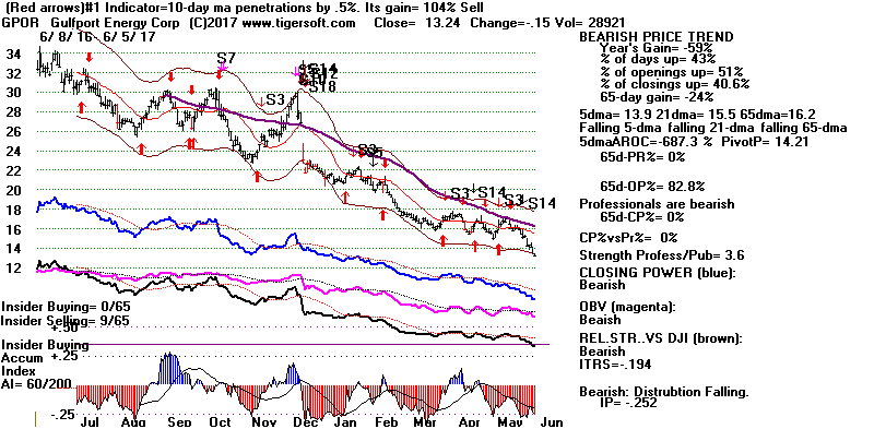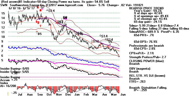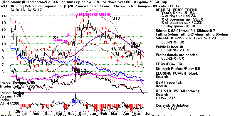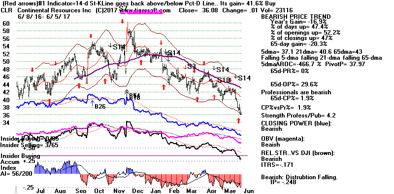 BEARISH MINCPS 6/5/2017 Most of these stocks are Oil stocks. Crude Oil's stochastic-20 Pct-D has been working great. Let's wait for it to drop a little more before covering. See it just below.