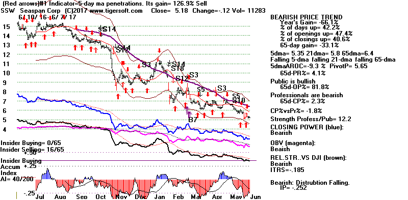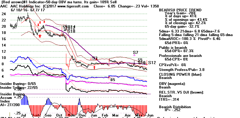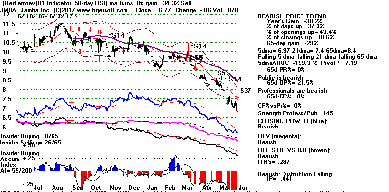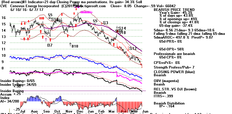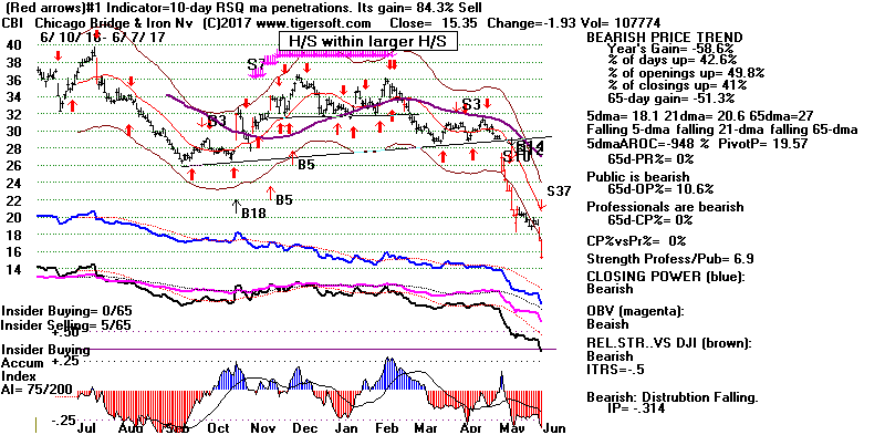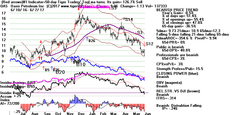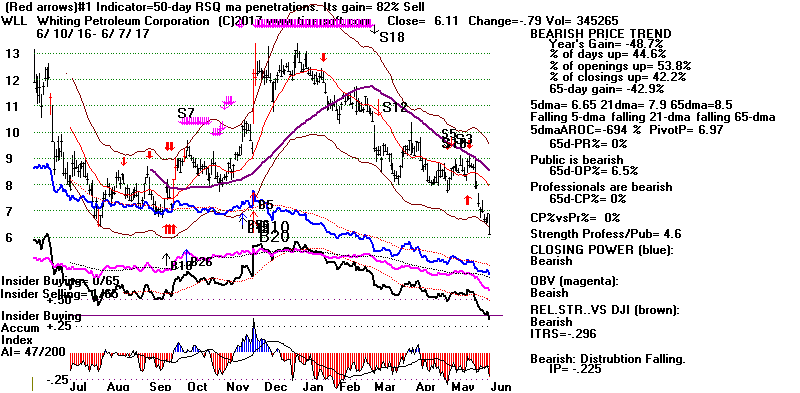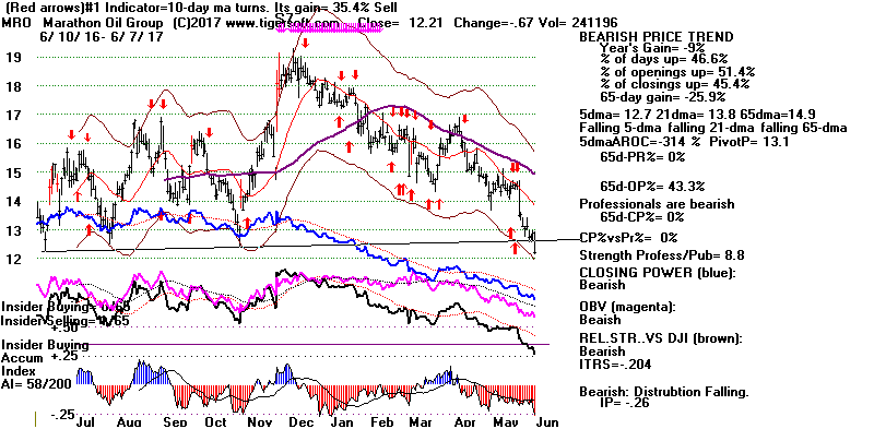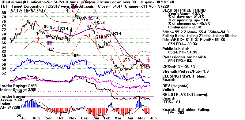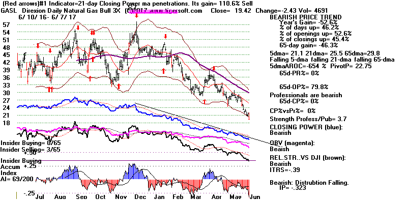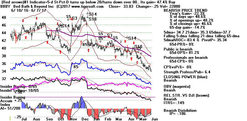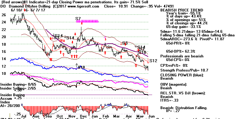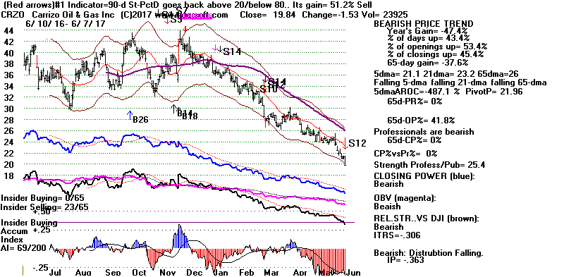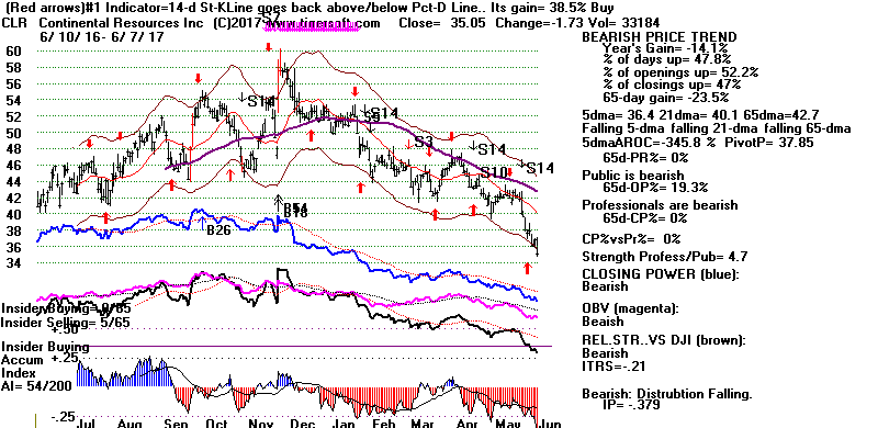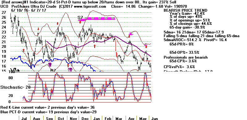 BEARISH MINCPS 6/7/2017 Most of these stocks are Oil stocks. Crude Oil's blue stochastic-20 Pct-D has been working great. Let's wait for it to drop a little more before covering. See it just below.