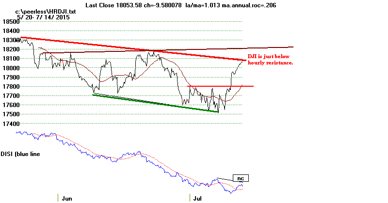 First, the DJI will probably need to surpass its hourly resistance at 18100.