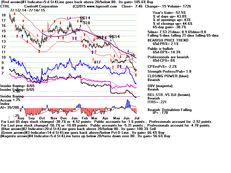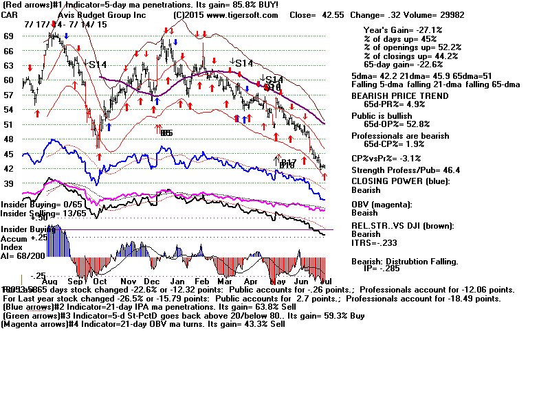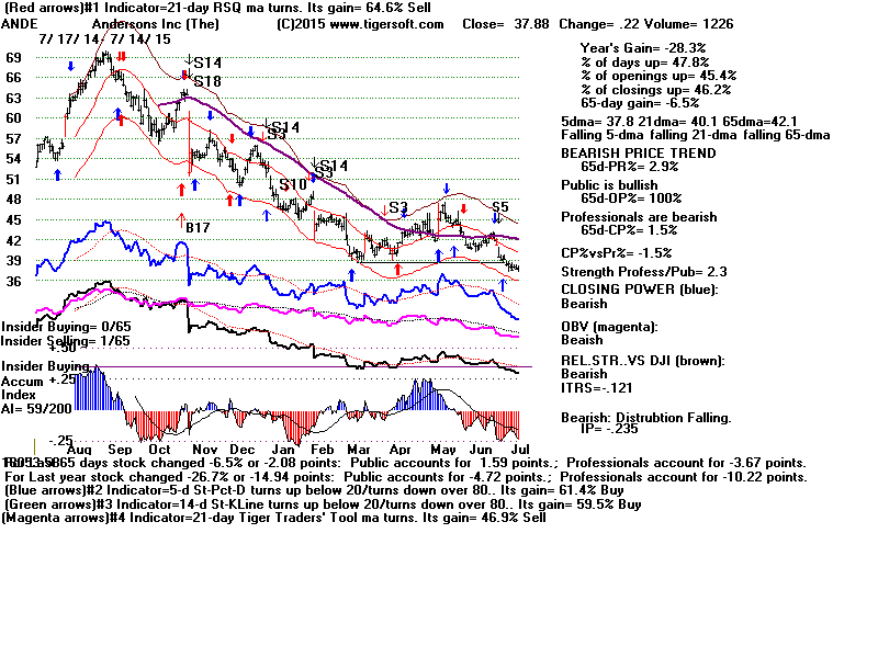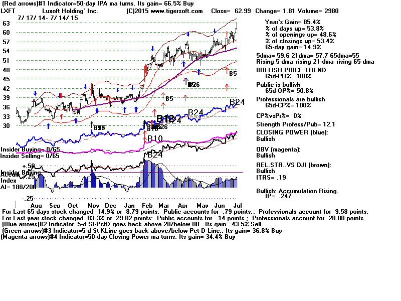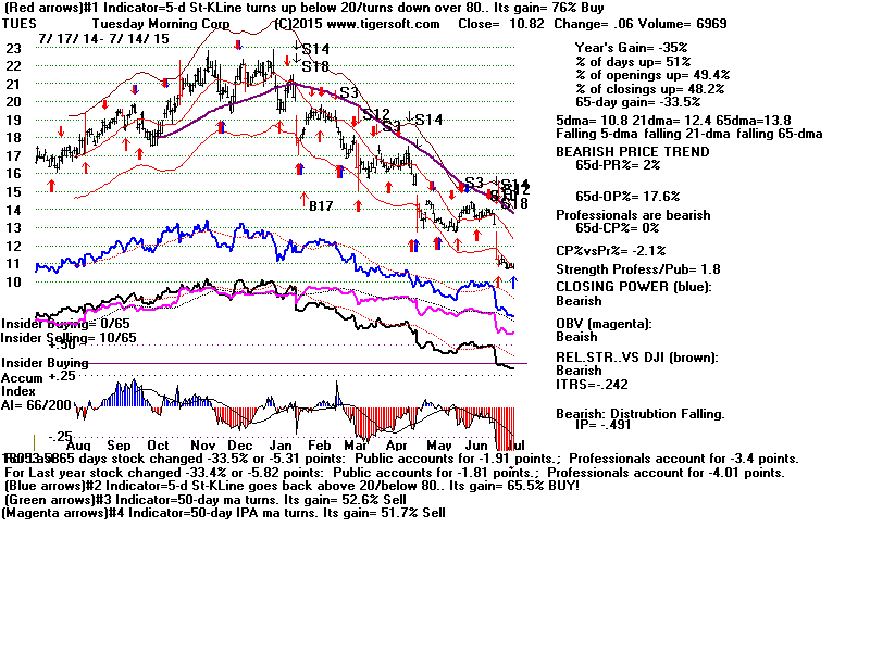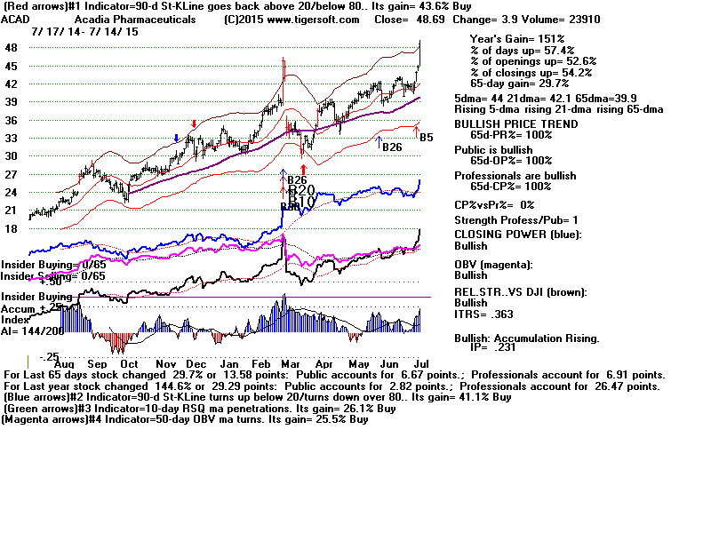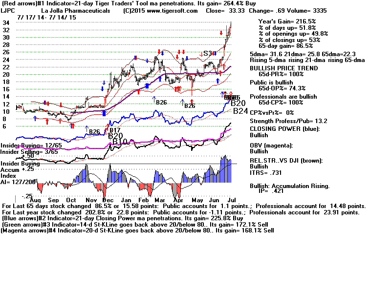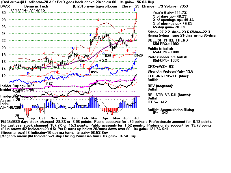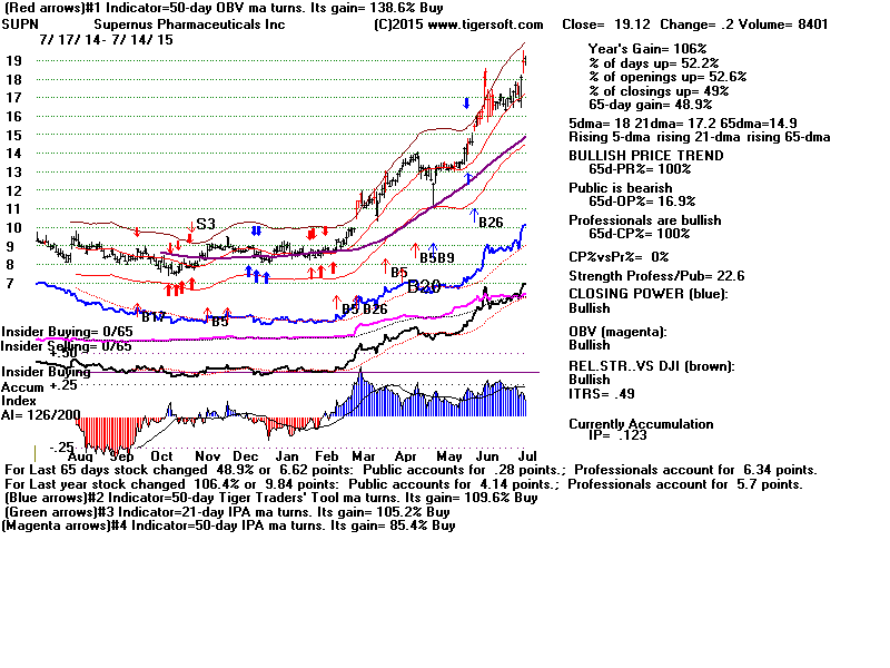 7/14/2015 150+ TigerSoft Charts Go to http://tigersoftware1.com/HH/ to see them. New Highs: NASD 76 NYSE 75 New Lows: NASD 23 NYSE 21 50 Bullish MAXCPs DY, ETH, LXFT, DPZ, ESNT, RLH, IDI Biotechs/Biomed: RARE (secondary announced) 140 employees NWBO - only 12 employees, ACAD - 118 employees SUPN - 309 employees DVAX - 197 employees BLUE - 143 employees EGRX - 30 employees CNMD - 35 employees - medical appliances LJPC - 25 employees ANAC - 100 employees 93 Bearish MINCPs CTRL, DLNC, ABX, CAR, MN, SLW, VC, TTM, GMCR, WY, TUES, DSW, ANDE |