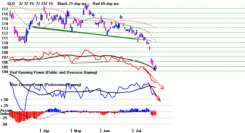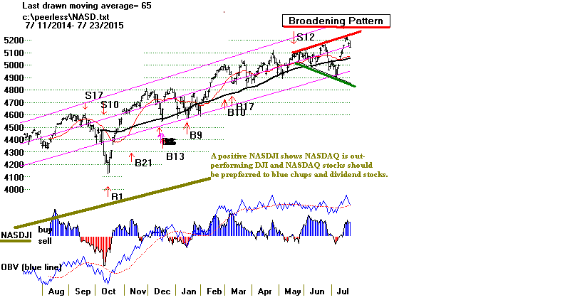 Deflation is the enemy of Gold. Commodities' | and natural resources' prices are in a long slump due to declining world-wide demand. The swiftness of the declines may also be a result of how readily Professionals can sell short leveraged vehicles representing thinly traded commodities. Will this happen to the stock market in a bear market? Will the stock market's decline then be accelerated. I think the answer has to be "YES". Leveraged short ETFs accelerated the decline somewhat then. There are a lot more such vehicles now. This is one reason wanted the new Sell S12*. It plugs a gap in the Peerless system that occurs when the upper 3.5% band is not being reached by the DJI. |