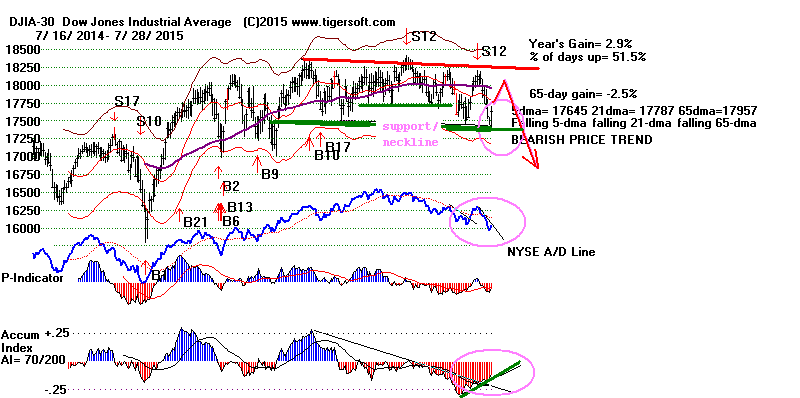 green neckline shown above is decisively violated, the DJI should soon