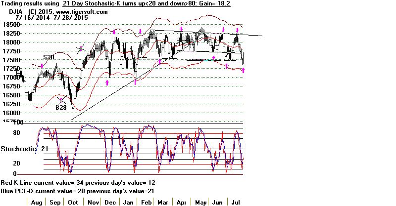 The DJI's 21-day Stochastic has moved back above the 20-level. In the