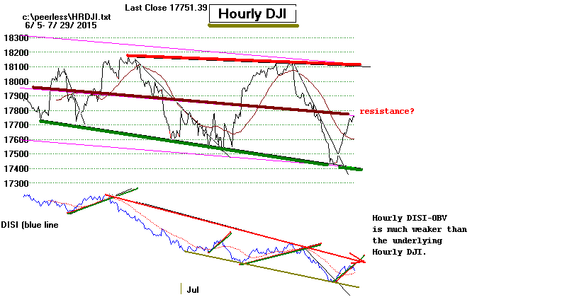(I will place numbers on the Hourly DJI and DISI charts to more