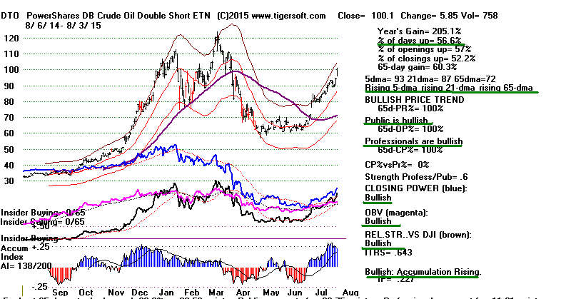 LEVERAGED ETFS - 08/03/15 5DAROC Symbol Last 5-dma Pivot Change .............................................................................................. IP21 AI/200 OP-PWR CP-PWR PCT-Up Daily Vol. notes ============================================================================================== 355.1 DTO 100.1 93.24 92.05 5.85 .23 138 Rising Rising .566 bullish --------------------------------------------------------------------------------------------- 327.8 SCO 94.3 86.98 86.18 5.46 .2 127 Rising Rising .566 bullish ---------------------------------------------------------------------------------------------