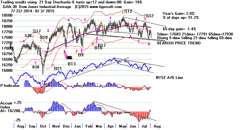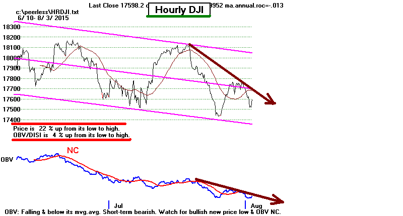 The very weak Hourly DJIA's OBV/DISI Line continues.