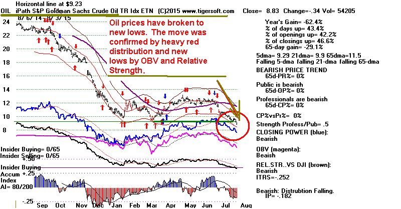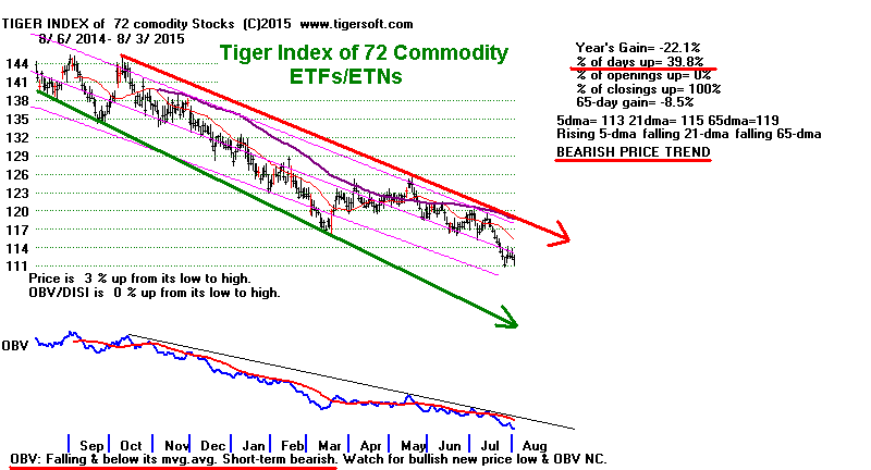 and an OBV new low. The long downtrend in commodities