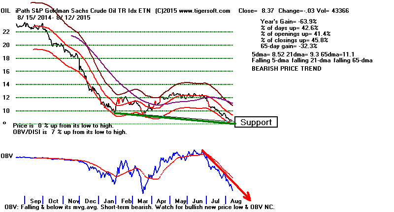 (Cumulative Accum. Index is falling, as is the OBV-Line.