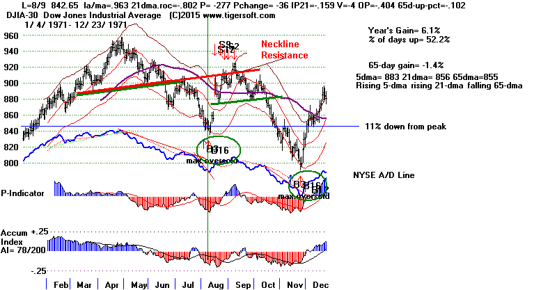 Trading Results by which Year in 4-Year Presidential Election Cycle the Buy B16s occurred in. Year No. Avg.Gain Presidential Election Year 5 .263 PE + 1 7 .281 PE + 2 8 .150 PE + 3 6 .115 B16 Trading Results by which Month the Buy B16s occurred in. Month No. Avg.Gain January 0 --- February 1 .988 March 2 .220 April 2 .097 May 2 .135 June 2 .044 July 2 .047 August 2 .039 (lowest) September 2 .153 October 3 .156 November 4 .172 December 4 .176 Previous August Buy B16s DJI Gain 19660831 B16 788.51 .022 no paper loss la/ma AROC PI PI-Ch IP21 V-I OPct 65-dma Pct Change .966 -.643 -257 41 -.189 -13 -.312 -.109 ------------------------------------------------------------------------------------------------------------- 19710809 B16 842.65 .055 fell to 839.59 (0.4% paper loss) la/ma AROC PI PI-Ch IP21 V-I OPct 65-dma Pct Change .963 -.802 -277 -36 -.159 -4 -.404 -.102 ------------------------------------------------------------------------------------------------------------- 20150825 B16 842.65 .055 la/ma AROC PI PI-Ch IP21 V-I OPct 65-dma Pct Change .906 -1.216 -310 +50 -.084 -246 -.507 -.141 |