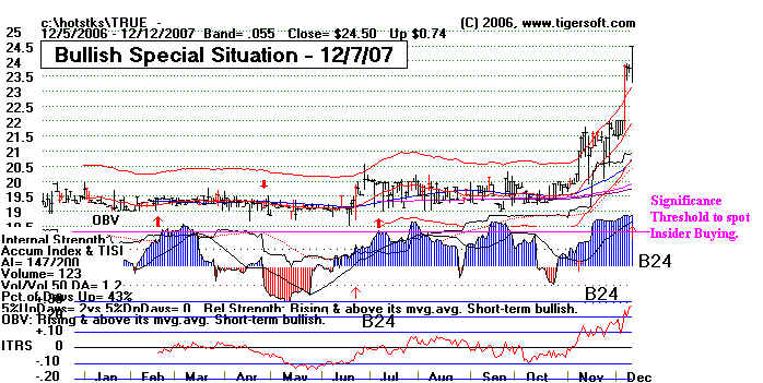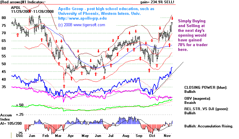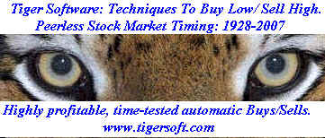 1) Have You Considered Quitting Your Day Job and Trading The Stock Market. Contrary to what you may think, this is feasible and reasonable if you have discipline and are willing to work hard and get up before the market opens. Day trading is not needed. Swing trading, where you hold a stock typically 3 to 50 days is, is recommended here. We gave seminars in Las Vegas on this in the past. And can sell you this manuals with suitable updates for only $125 if you have bought our Peerless and Tiger programs. Just call us and ask for our new manual. : "Yes! Quit Your Day Job and Trade The Stock Market for A Great Living." Here are some of our basic propositions. 1. Peerless Major Buys and Sells ARE powerful and reliable. The book shows how to take advantage of them. Discover the best Opportunity Patterns among stock charts in this environment. 2. Trade the Most Accumulated Stocks. They are tightly held. Insiders know very good things about them. And they rise more than 36% per year on average. But most of their gains often come after certain setup-price patterns. Recognize them and take advantage of them. 3. Trade the best Opportunity Patterns. Make a list each night. And watch them. When they hit the price we teach you to look for, pounce like a TIGER! 4. Watch for unusual volume. Learn how to investigate in on the internet. 5. Use TigerSoft to show you which sectors are hot. Sticking with these increases your odds. And watch for the first stocks "out of the gate". They're the one you want to own. 6. Trade the NASDAQ-100 stocks like a pro with short-term Buys and Sells. 7. Always PLAN and BE PATIENT. Wait for the right moment and pounce like a TIGER. 8. Use Tiger's Seasonality Studies for the stocks you trade. See which days are best for buying and selling. 9. Don't Buy at The Opening, unless you Tiger shows you it is safe, which is unusual. 10. Buy stock that open higher and close still higher than the opening. |