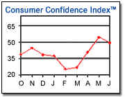 The number of advertised vacancies declined from May 2007 to May 2008 in 43 states (compared to 44 states in April 2008), and all the states experienced a slowing in the year-over-year growth rate. The April employment data released by the BLS indicates that 43 of the 50 states also experienced a slowing in their year-over-year growth rate of employment. States where job seekers are continuing to see a large number of advertised vacancies include Alaska, Nevada and Colorado. Alaska posted 4.98 online advertised vacancies for every 100 persons in the state labor force, the highest rate in the nation. Alaska has held the number one position for nine months in a row. Nevada (4.17) and Colorado (4.14) were close behind in the number of advertised vacancies when adjusted for the size of the state labor force. Half of the top 10 states with the highest ads rate are west of the Mississippi and in addition to Alaska, Nevada and Colorado, include Arizona (3.74) and Washington (3.57). The remaining states were on the East Coast and include Delaware (3.90), Massachusetts (3.89), Maryland (3.77), Vermont (3.75) and Connecticut (3.55). Online advertised vacancies in California, the state with the largest labor force in the nation, totaled 505,700 in May. The ad volume in California dropped by nearly 200,000 ads, 28 percent below the May 2007 level. The volume of online advertised vacancies in Texas (319,600) was down 13 percent and ads in New York (264,800) were down 16 percent from year ago levels. Source: www.conference-board.org/economics/helpwantedOnline.cfm |