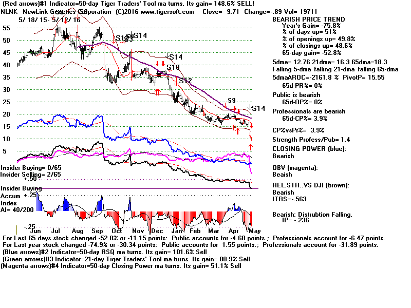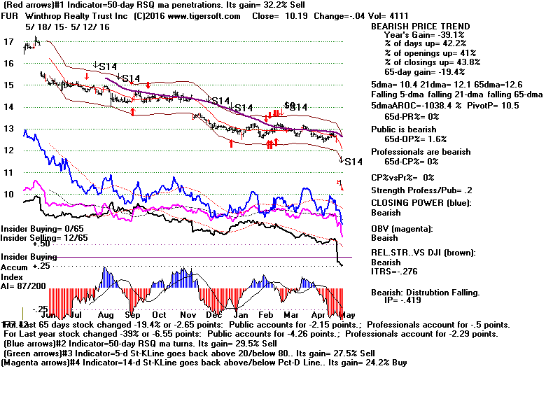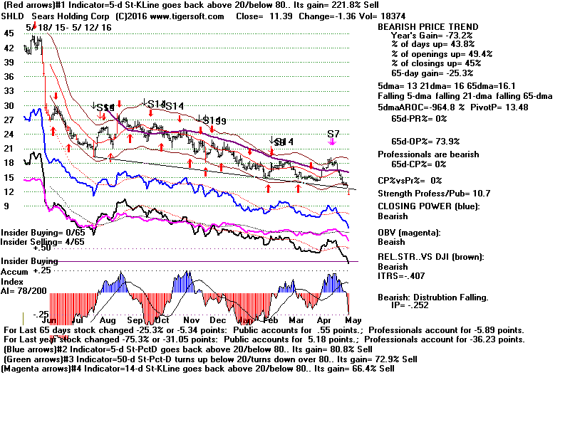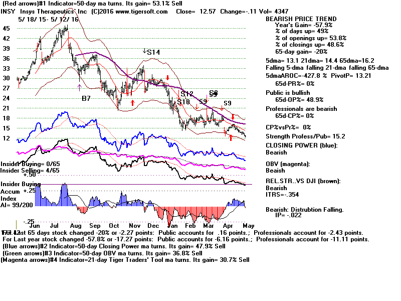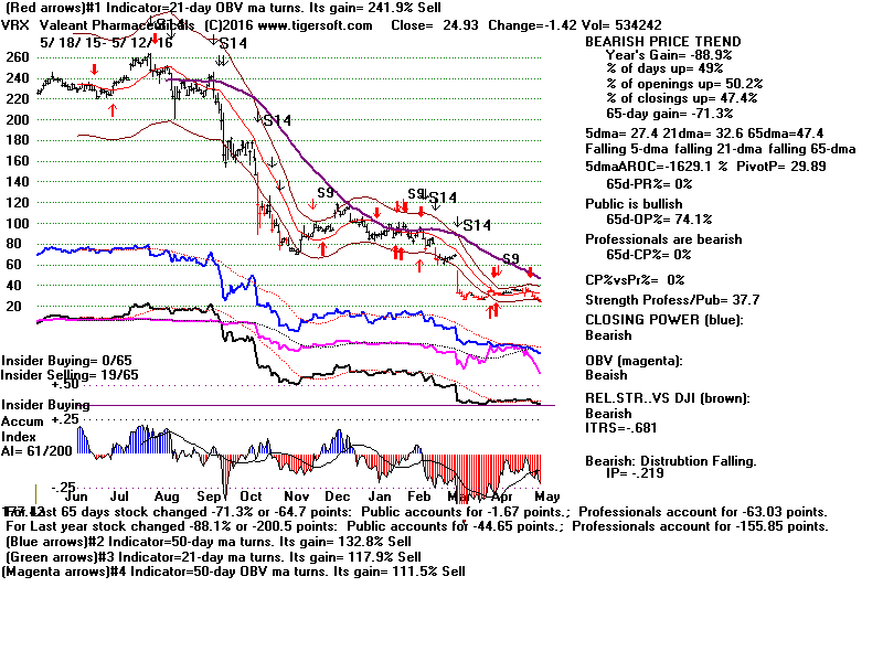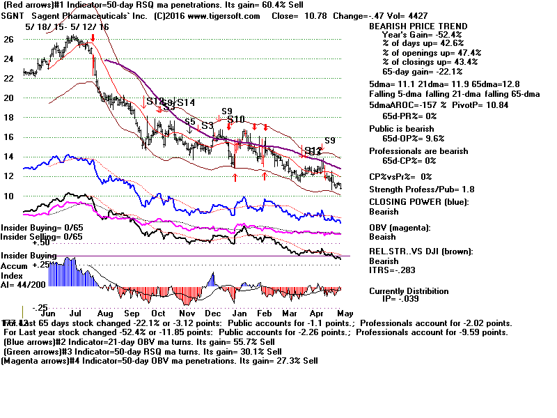 BEARISH MINCPs 5/12/2016 Notice how multiple S14s (dumping) and S9s (Big Money distribution on strength) let us focus on very weak stocks for shorting.