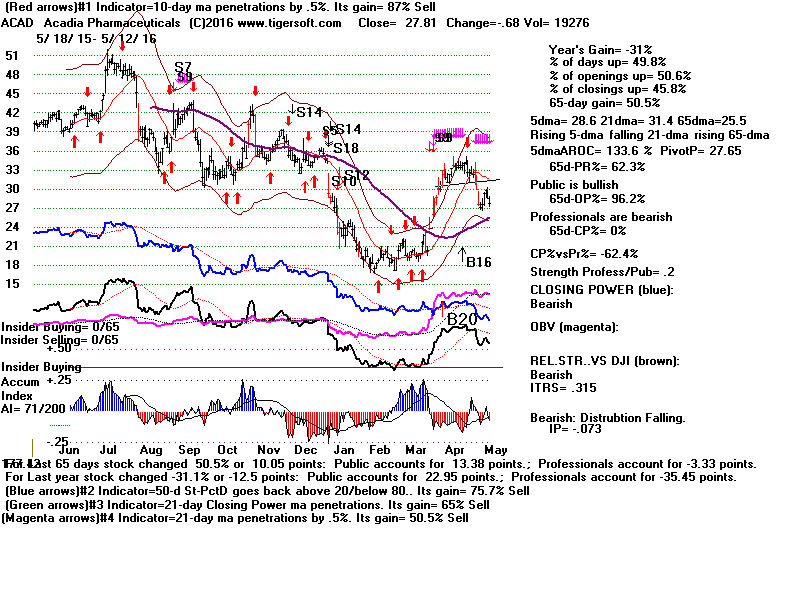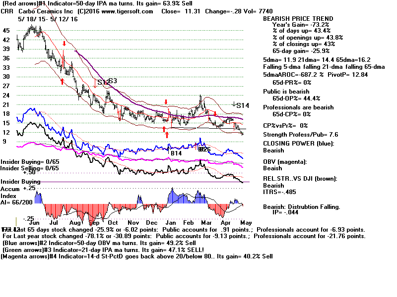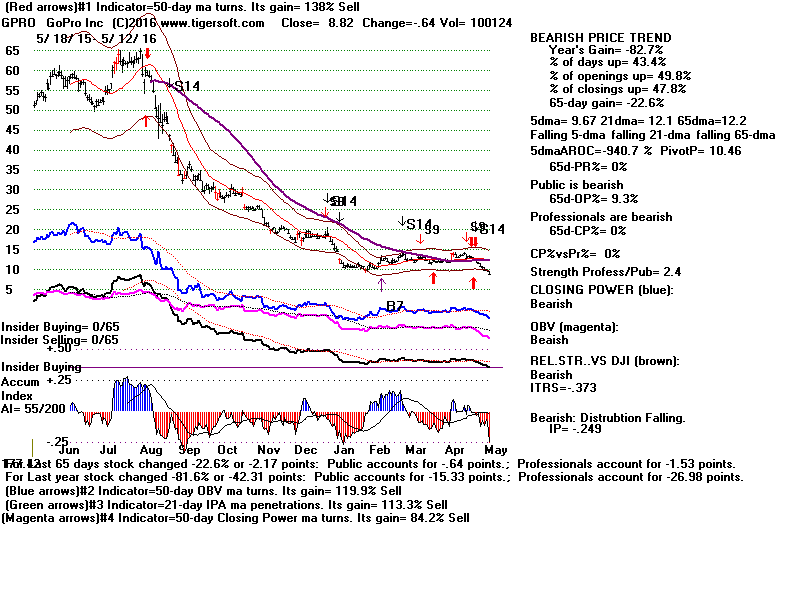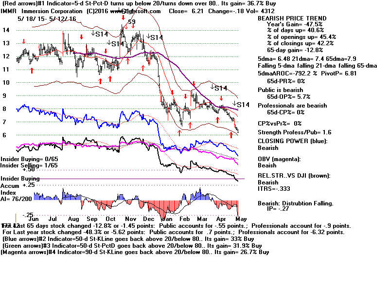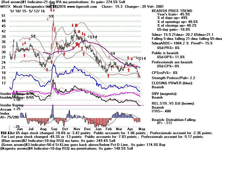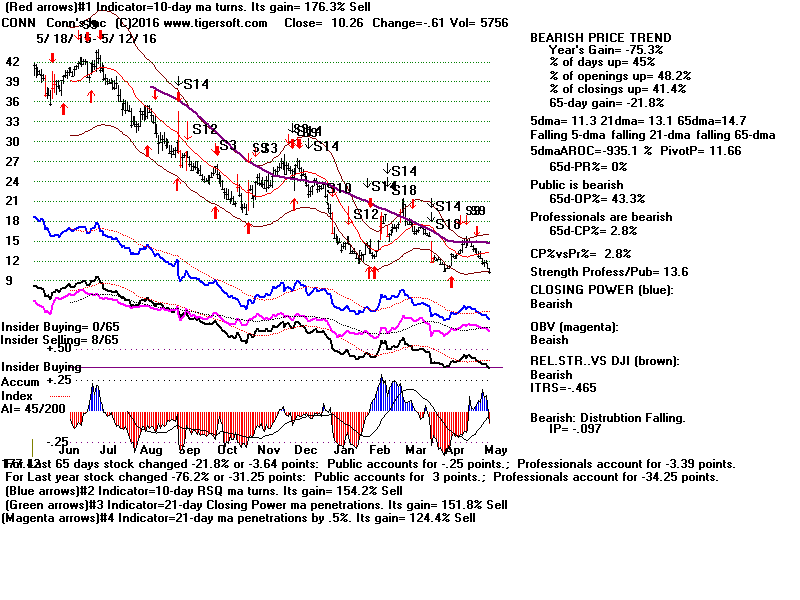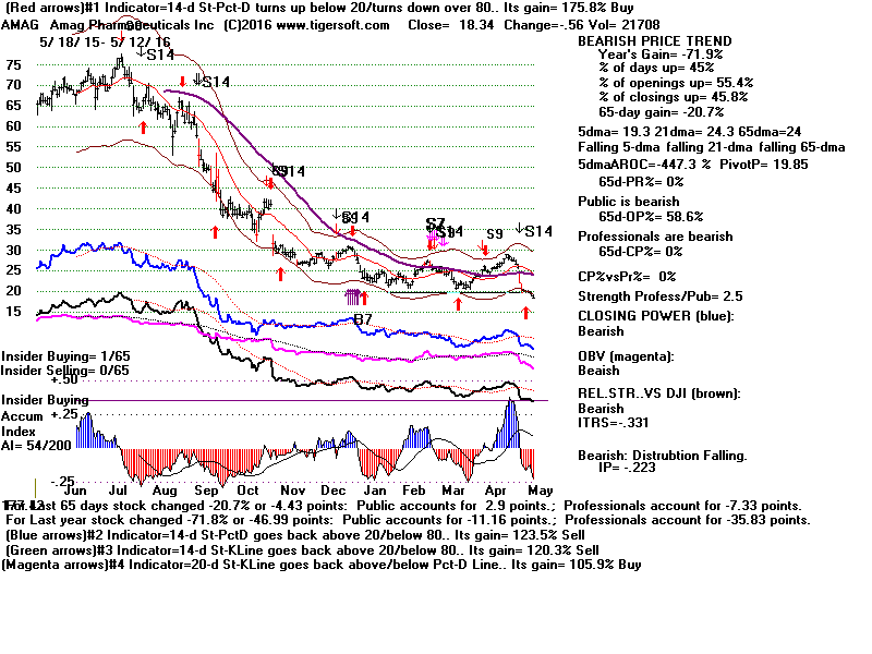 BEARISH MINCPs 5/12/2016 Notice how multiple S14s (dumping) and S9s (Big Money distribution on strength) let us focus on very weak stocks for shorting.
