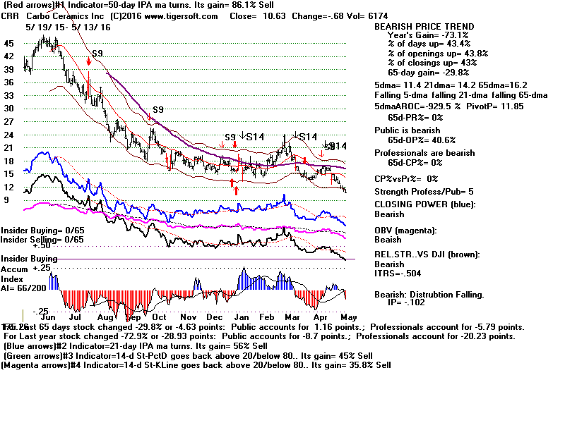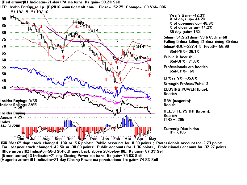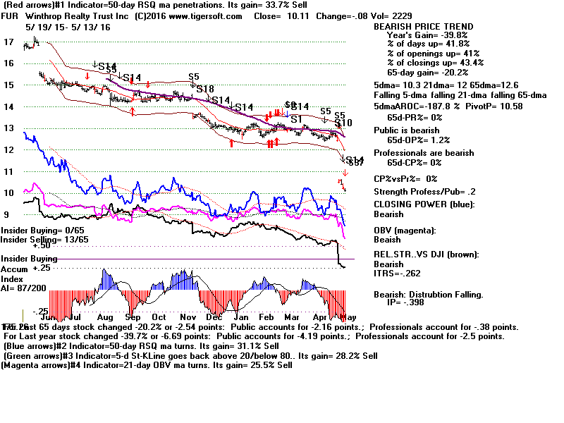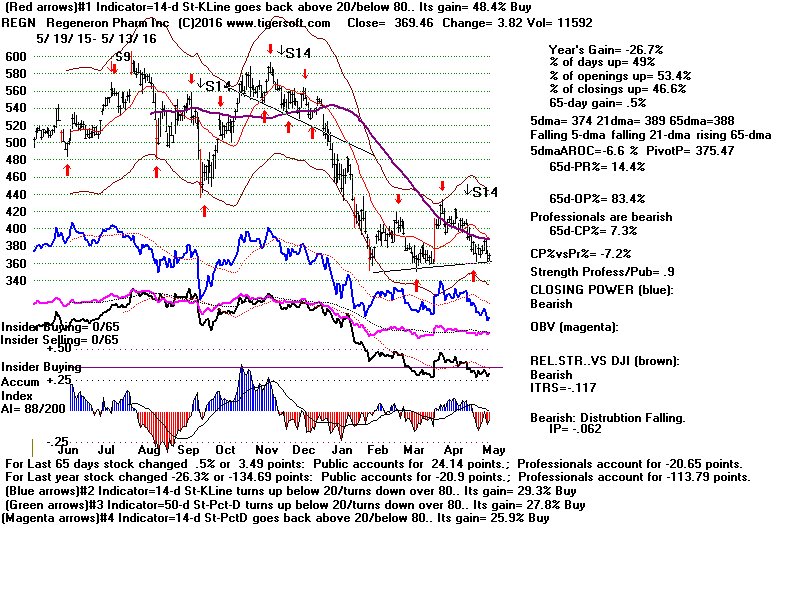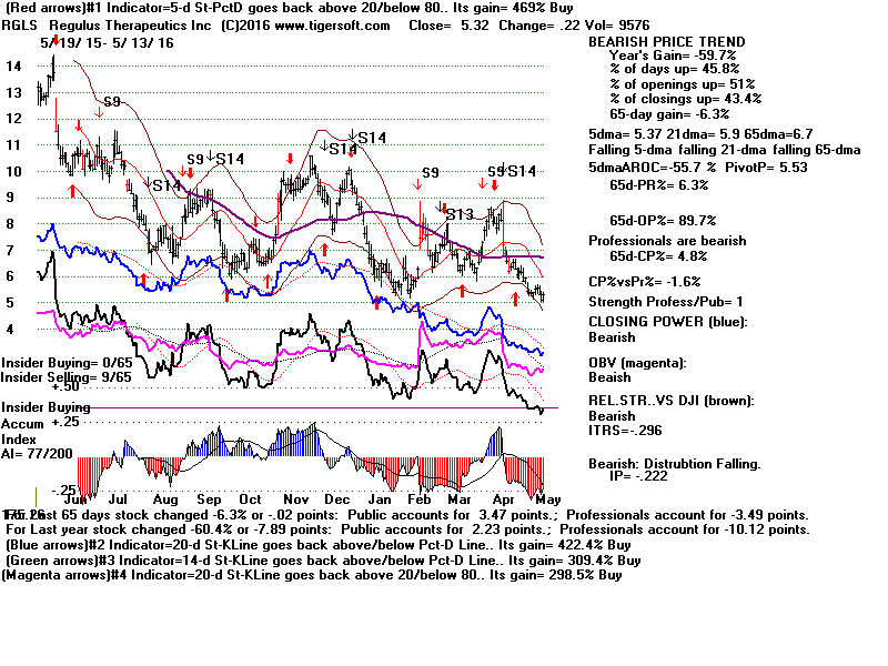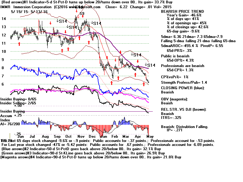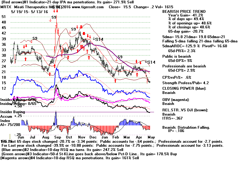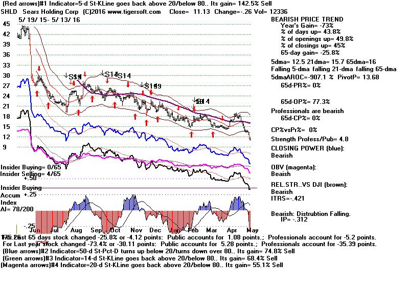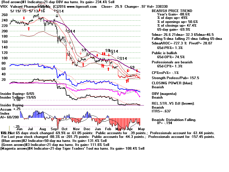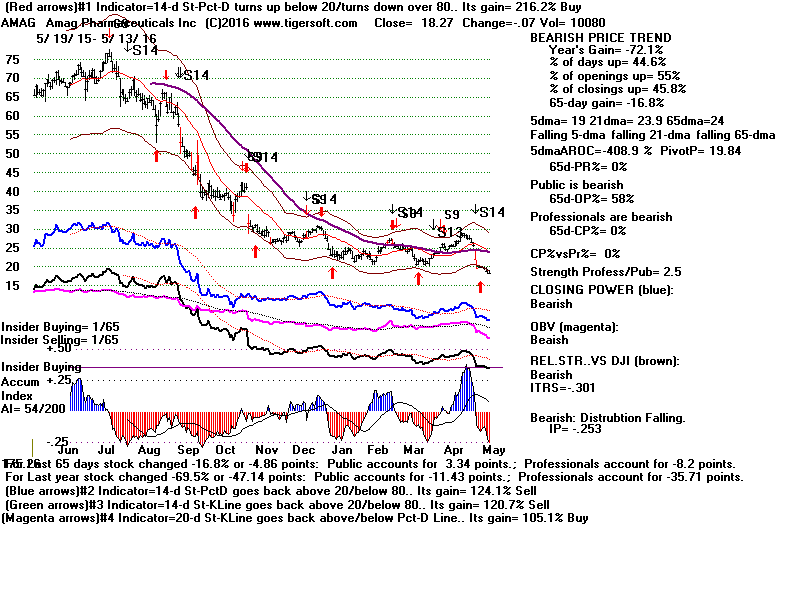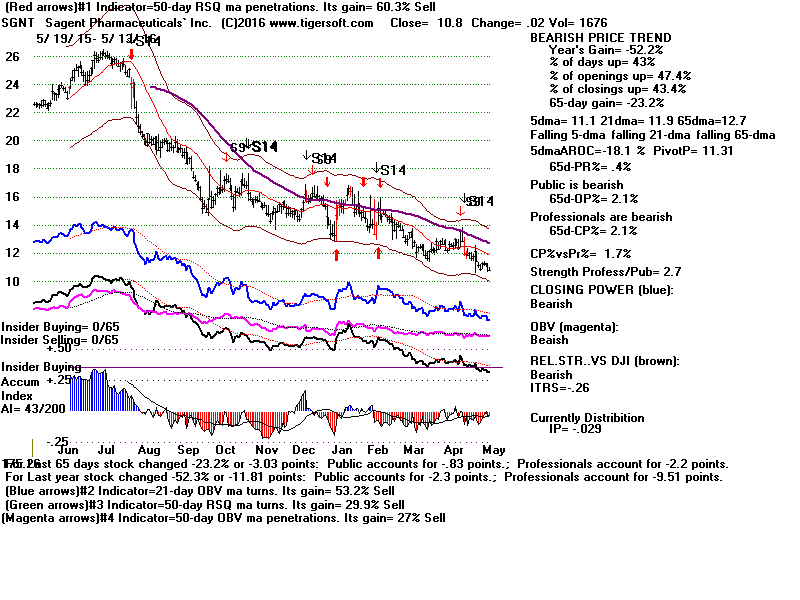 BEARISH MINCPs 5/13/2016 Notice how multiple S14s (dumping) and S9s (Big Money distribution on strength) let us focus on very weak stocks for shorting.