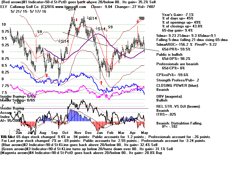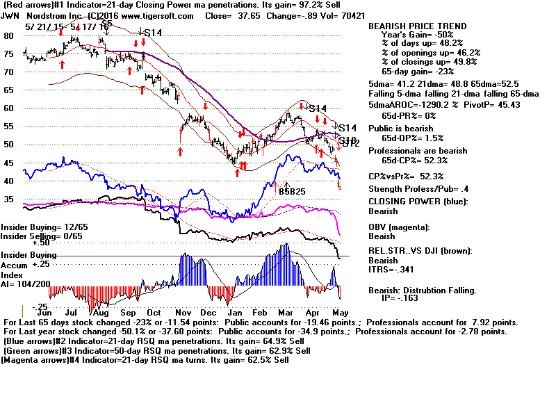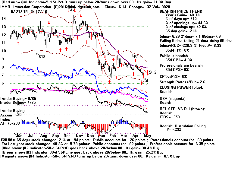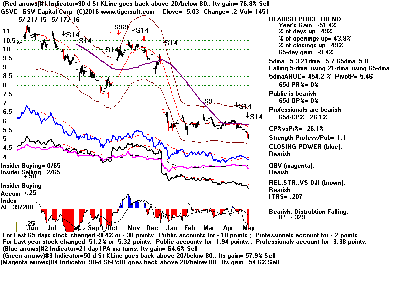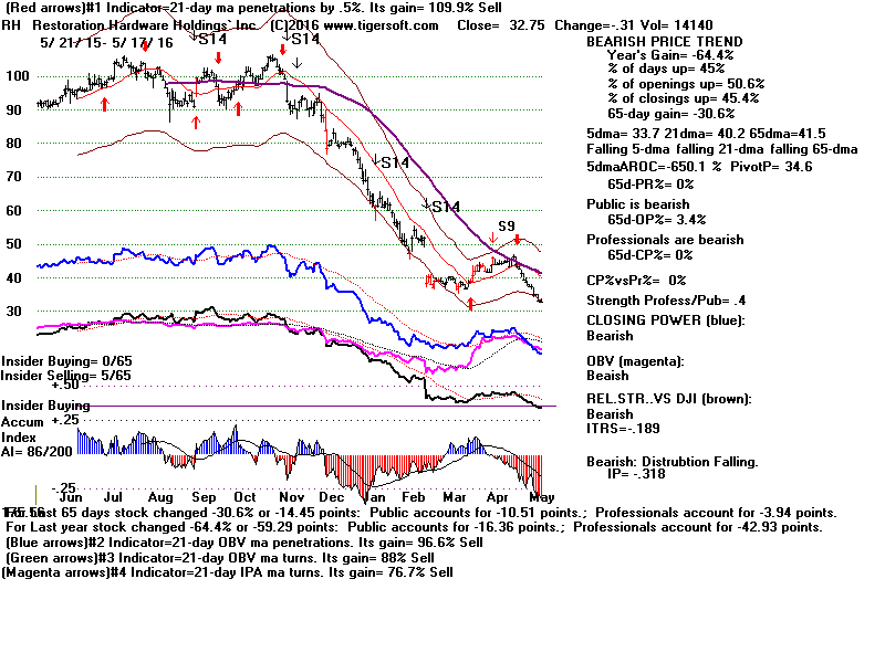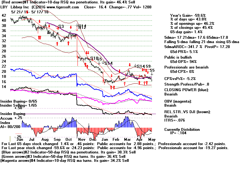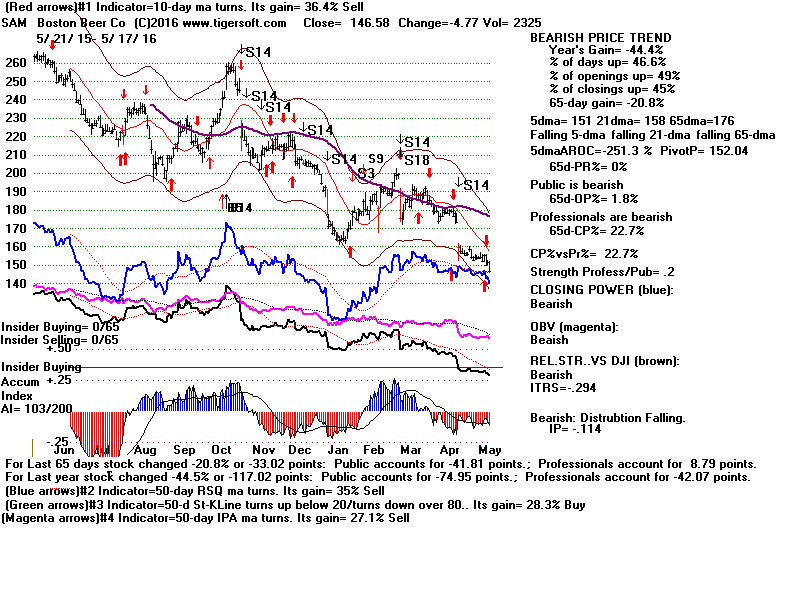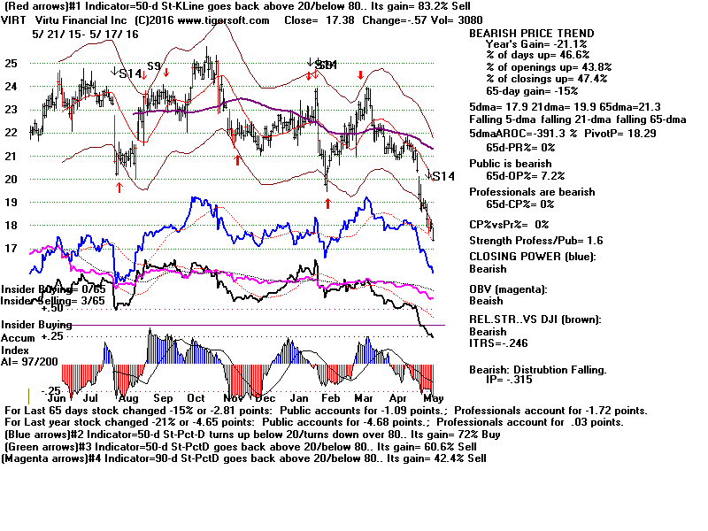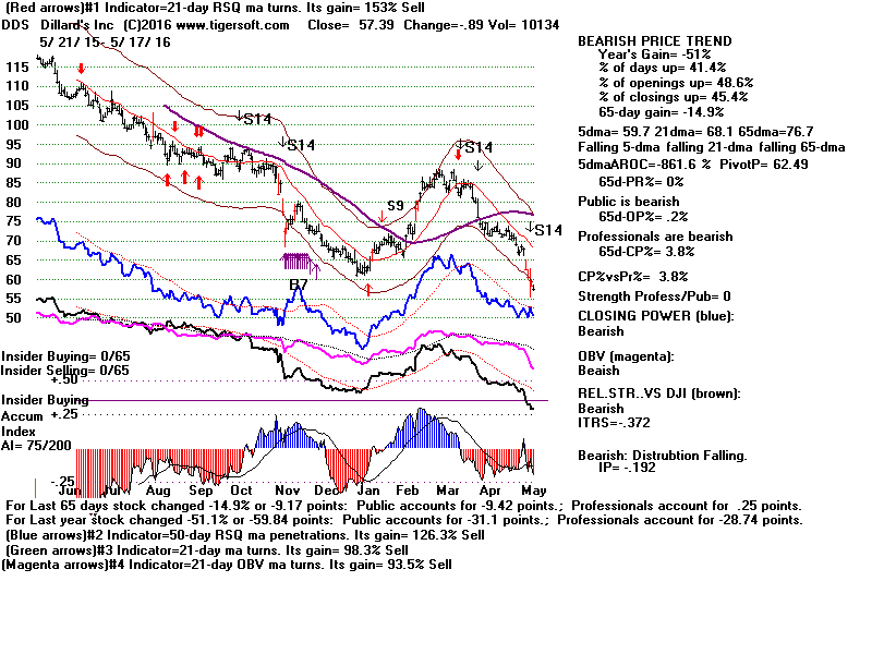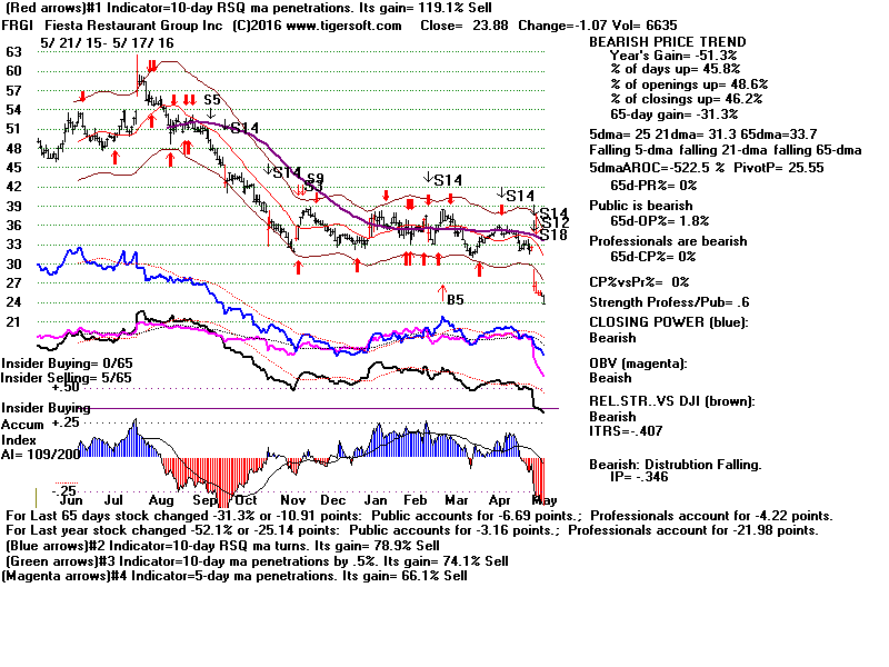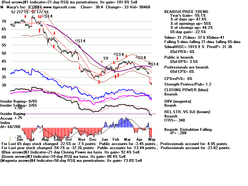 BEARISH MINCPs 5/17/2016 Notice how multiple S14s (dumping) and S9s (Big Money distribution on strength) let us focus on very weak stocks for shorting.