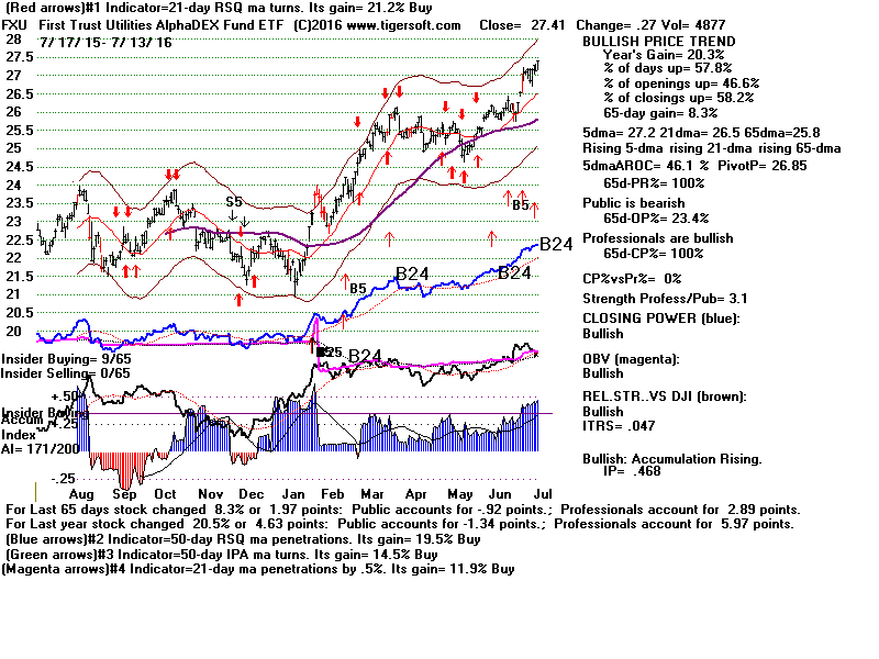 Quicksilver - Biggest Gaining ETFs and Bullish MAXCPs 7/13/2016 With high relative strength stocks, look for flat tops showing weak selling and flat top breakouts to start a new move.