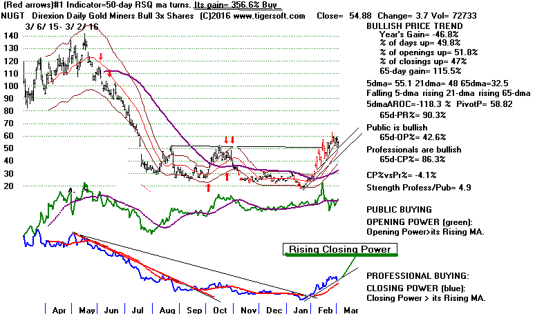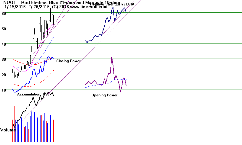 Both Opening and CLosing Power are rising, but NUGT's 5-dma