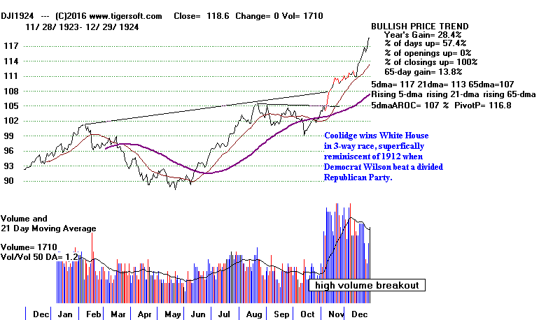 DJI after "Silent Cal" Coolidge's Election in 1924