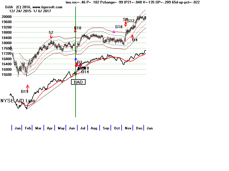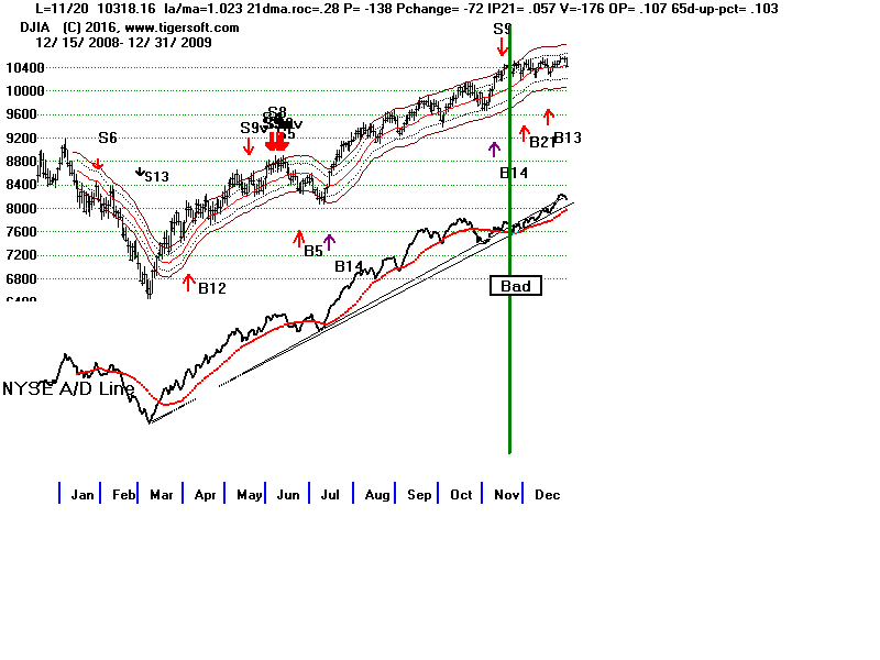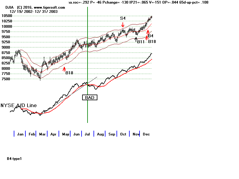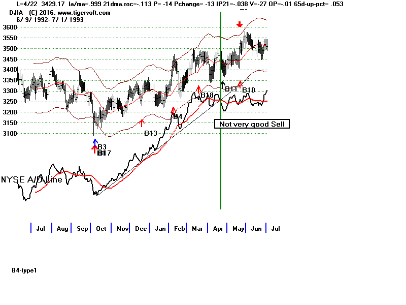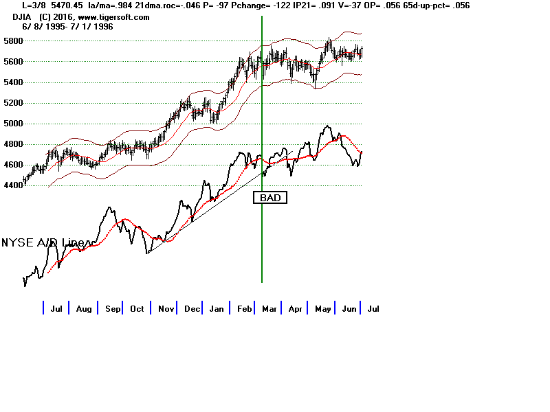 A/D Line trend-breaks since 1992