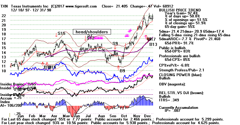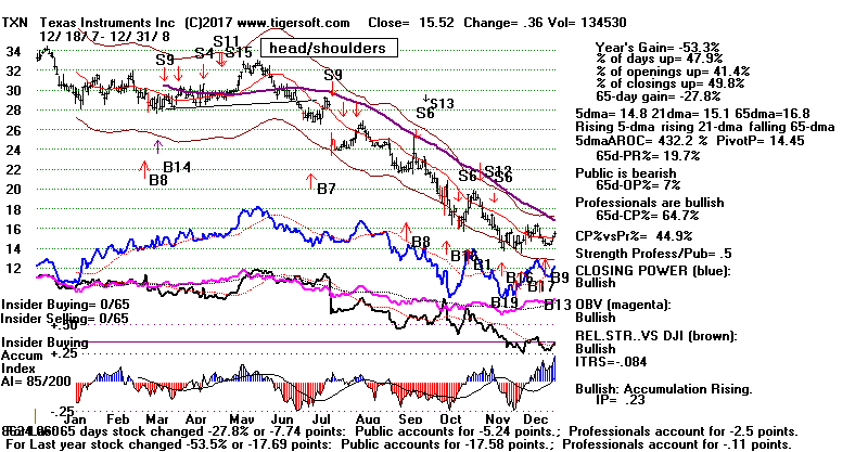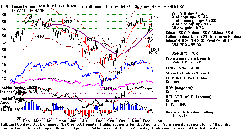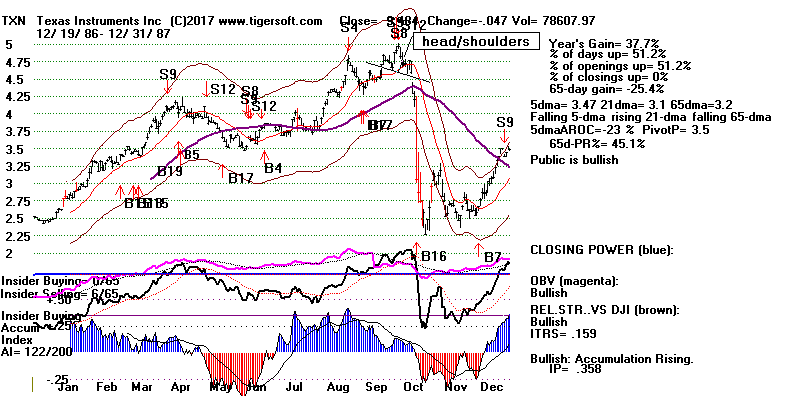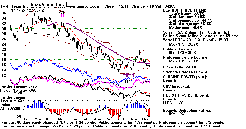 TXN as Canary-in-the-Mine Before Big DJI Declines of More than 15%, TXN Forms Recognizable Head/Shoulders or Its Variants.